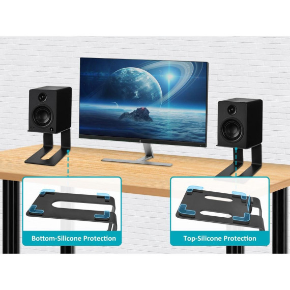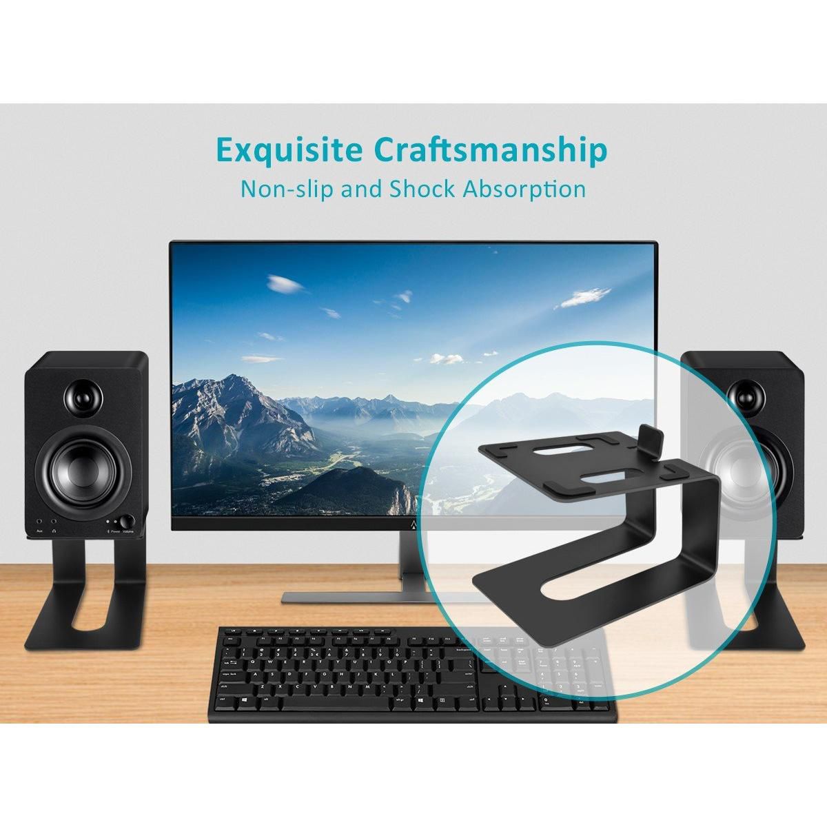 Constructed with high-quality metal, these durable and stable stands ensure your speakers are securely elevated for an immersive audio experience. The tilted design not only adds a modern touch to your desktop but also provides an angle that directs sound waves directly toward your ears, maximizing clarity and reducing distortion.