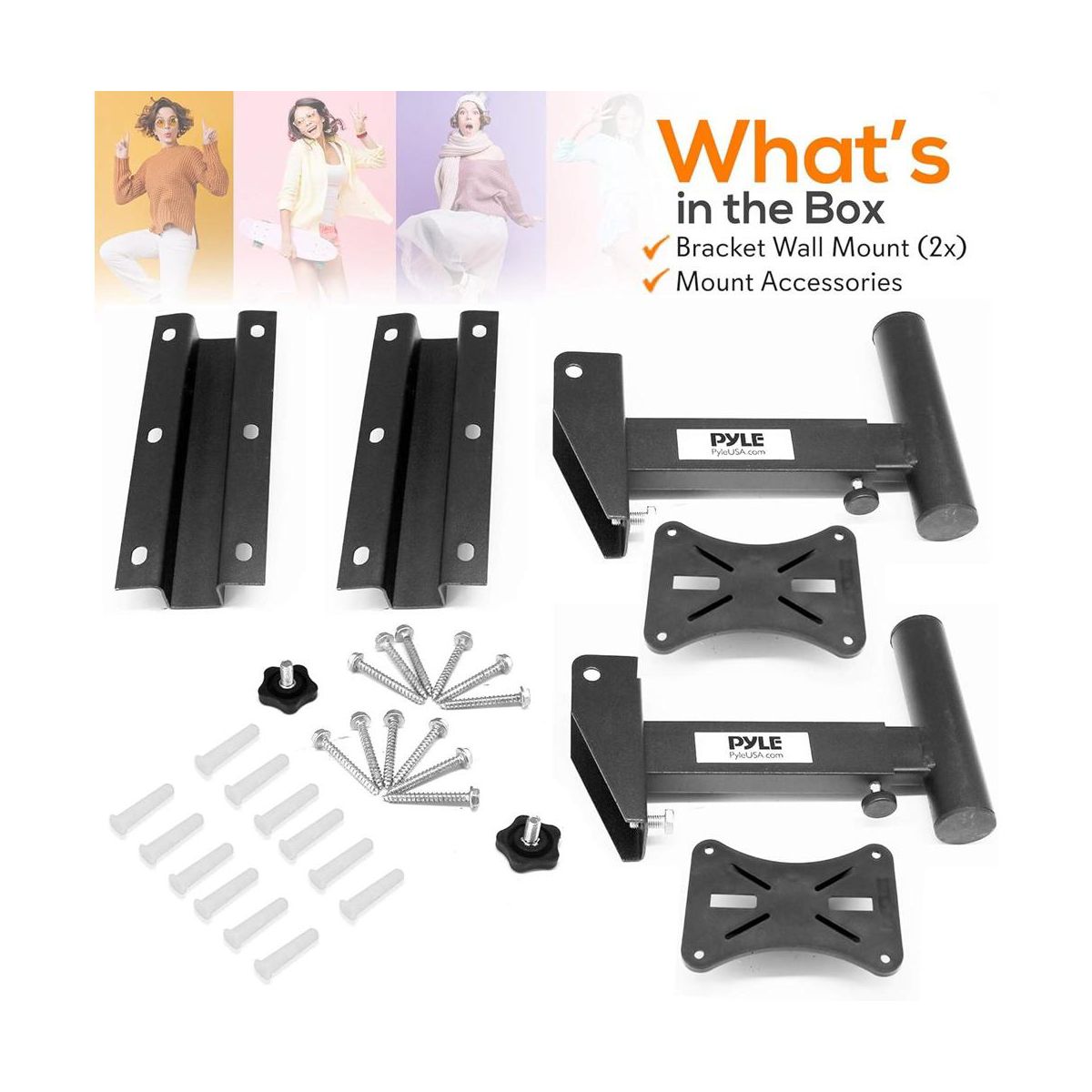 Pyle Dual Wall Mount Speaker Brackets - Heavy Duty, Adjustable, Universal (PSTNDW15)