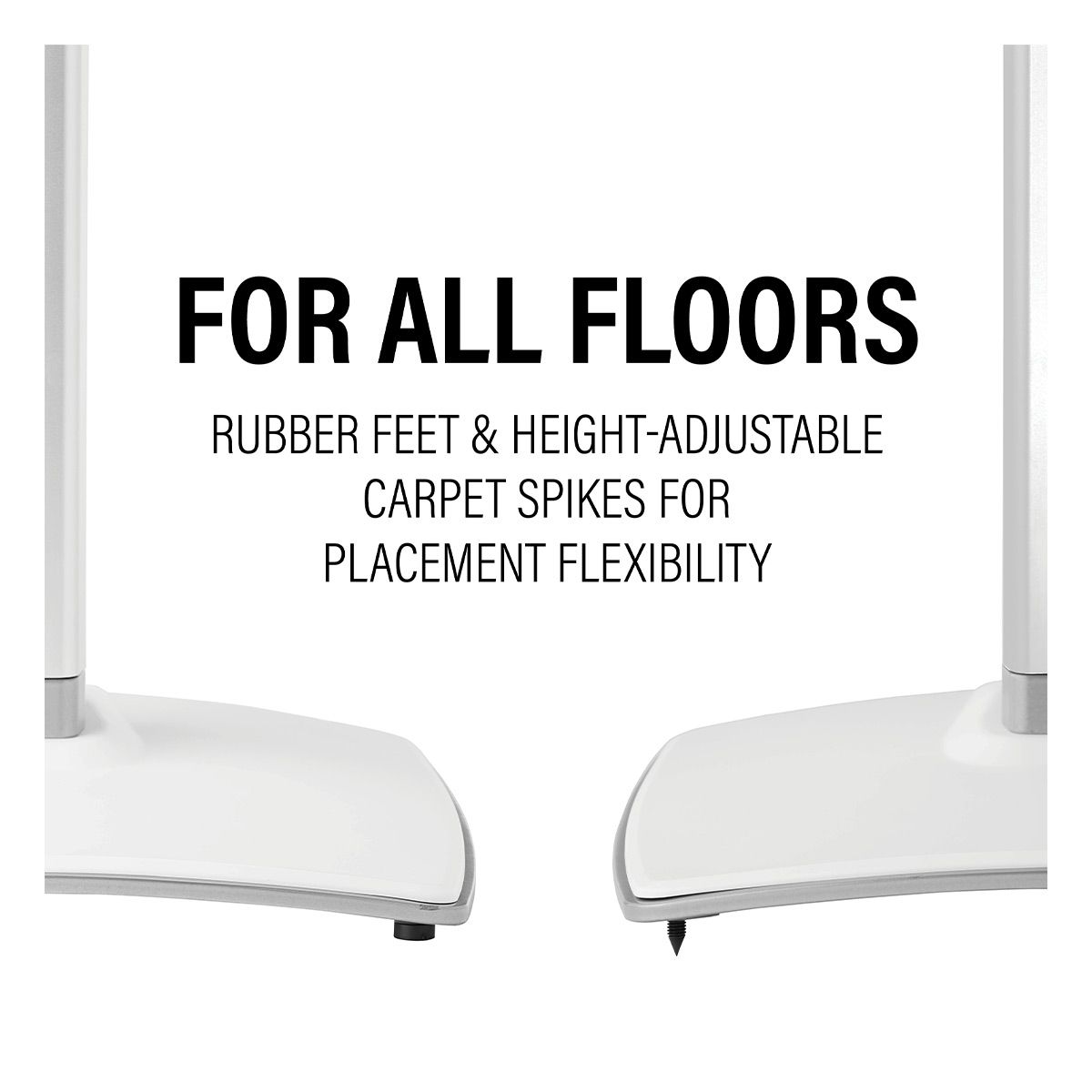 •Includes rubber feet height-adjustable carpet spikes for any floor