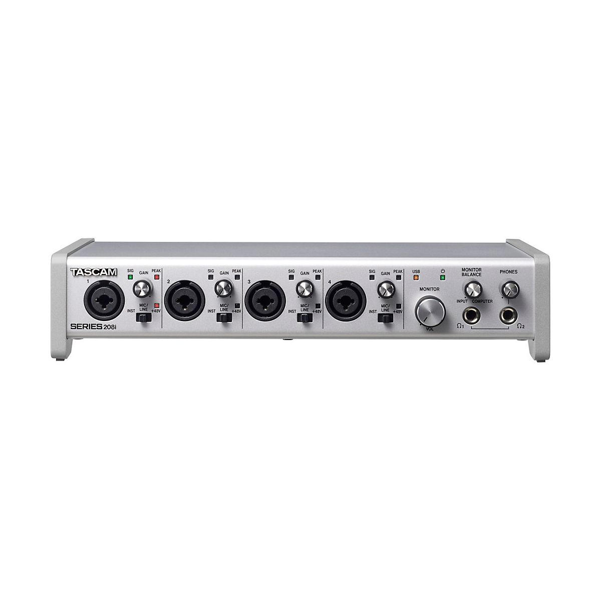 The TASCAM SERIES 208i 20-In/8-Out USB Audio/MIDI Interface provides professional quality, expandability, both internal and bundled effects processing, internal mixing, external software control and more for studio, home, and live recording. With a new look, including an angled tabletop design and large, easy-to-grab knobs, TASCAM sets a new standard for mid-grade audio interfaces.Supreme Audio FidelityIt all starts with the best sound: TEAC and TASCAM have more than 60 years of high-grade audio design experience. TASCAM Ultra-HDDA (High Definition Discrete Amplifier) mic preamp circuitry guarantees transparent natural tone with ultra-low noise. A new-generation TASCAM audio interface engine delivers high-definition, 24-bit/192kHz recording and solid stability.Expandable Input CapabilityEasily add more input channels to accommodate future growth by using external microphone preamplifiers with S/MUX optical inputs to record drums, guitars, keyboards, vocals and more. SERIES 208i has two S/MUX optical ports that can accept up to 16 channels of audio input from an ADAT- or S/MUX-compatible device. Built-in DSP Effects and ProcessingA DSP input and output mixer are complemented with digital reverb, compressor, phase invert and 4-band EQ for each channel. Having these processors included internally eliminates all latency issues and takes the load off the computer allowing the PC/Mac to process the audio more efficiently.Control Software for Matrix Mixing, Effects Processors and MoreFree, easy-to-use TASCAM Control software manages faders, processing, and the ability to route any audio input (analog, optical, and USB) to any audio output. A new USB driver offers very high stability, ensuring 100% reliable performance every time.Well-Designed Interface for Quick ProductionTASCAM SERIES audio interfaces feature a large, easy-to-grab Monitor control knob that ensures can quickly adjust the monitor output level. Their angled tabletop design offers easy access to all front-panel controls. A handy Monitor Balance control enables mixing live input with computer playback for zero-latency monitoring. Each analog input channel is served by an individually switched +48 volt phantom power supply for condenser microphones.Included Software BundleAs a standard value-added feature, TASCAM SERIES 208i ships bundled with a suite of software: at the core of music production is Steinberg’s Cubase LE / Cubasis LE; for instrument recording included is IK Multimedia’s AmpliTube with guitar/bass modeling and powerful effects; newly added to the bundle is iZotope’s redesigned Neutron Elements, which includes 4 powerful tools for creating great mixes; last but not least, IK Multimedia’s T-RackS mastering software will finish up users’ creations into high-quality masterpieces.
