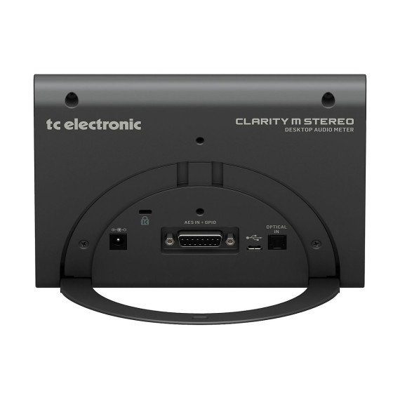 While a stand-alone hardware meter, the Clarity M Stereo also integrates with DAW via plug-in metering for Pro Tools, Logic Pro, Nuendo and all major VST, AU and AAX hosts. This integration of hardware and software metering is ideal. The Clarity M Stereo connects via unbalanced AES3, S/PDIF, optional AES/EBU, TOSLink optical and USB. An included stand lets place it on any desktop. Mounting holes, a suction cup and a clamp provide other mounting options.