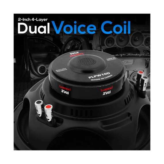 The Pyle PLPW12D 12" Car Subwoofer delivers thunderous bass performance thanks to its dual voice coil design and powerful 1600-watt peak power handling. Built with a 2-inch 4-layer voice coil, this subwoofer is designed to handle high temperatures and heavy usage, making it perfect for high-output car audio systems.