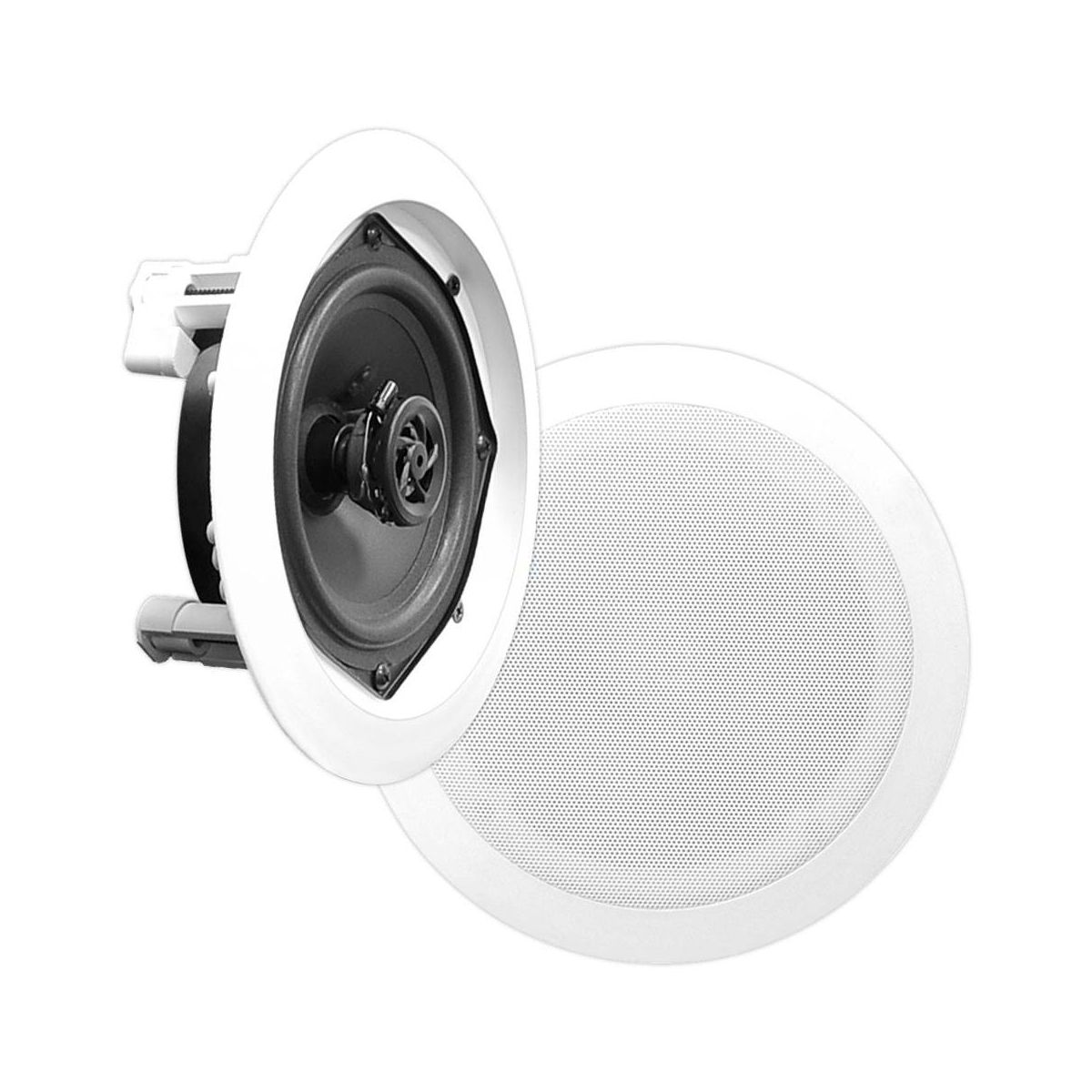 The Pyle PDIC speaker system delivers stereo sound to any room in your home or office without cluttering floor space. This pair of 5.25'' speakers can be used for in wall and in ceiling applications as they mount flush for a clean look. Perfect for custom installations, the PDIC series speakers feature polymer dome tweeters, impressive power handling capability, high temperature voice coils and high efficiency response rates – all to produce more full and rich sound. Convenient speaker terminals allow for quick and hassle free speaker wire connection. System includes cut out template for easy installation. Achieve wide ranged sound performance and add audio to any room with the PDIC Speaker Systems.