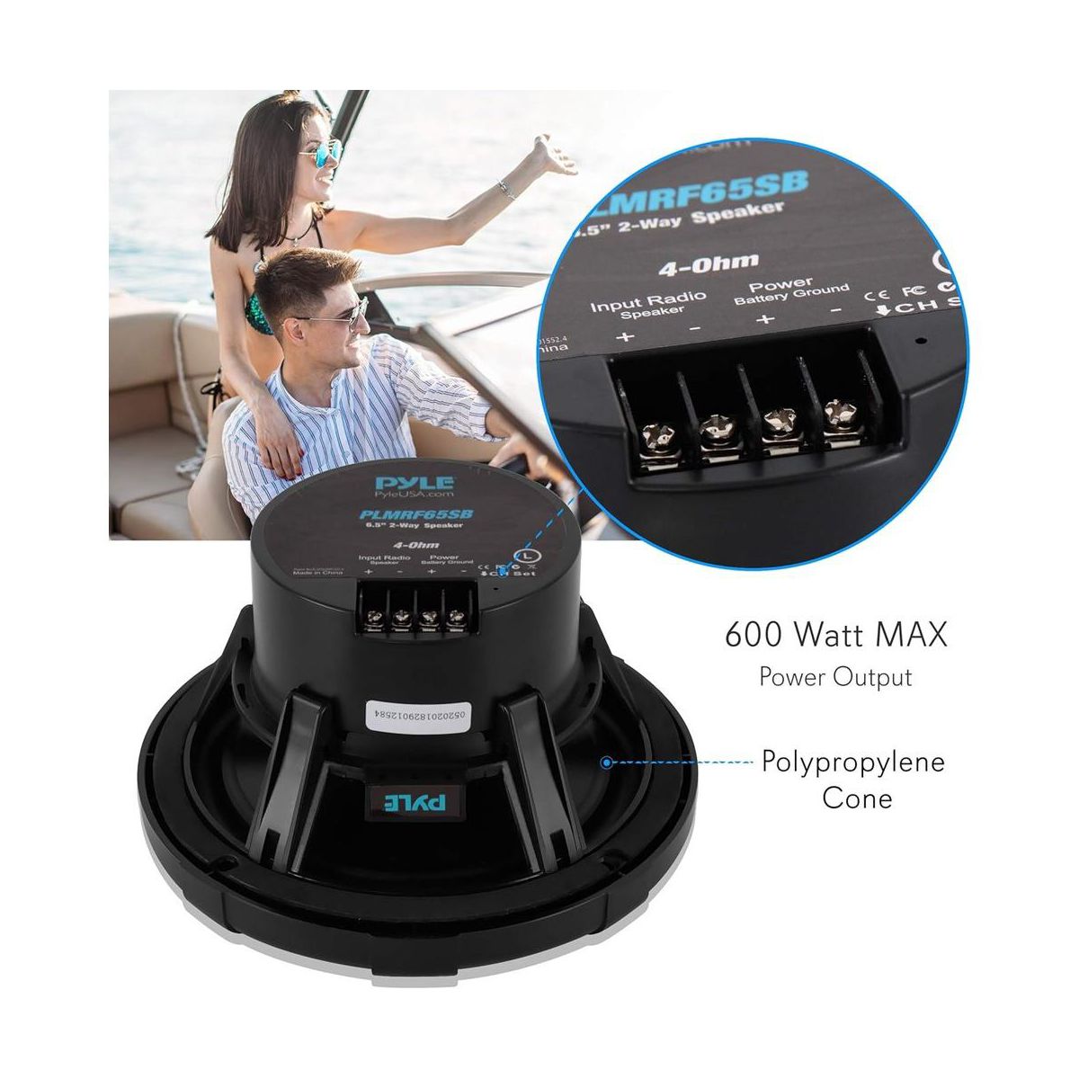 6.5" Waterproof Marine Speakers for Streaming with 600W Power, Bluetooth + Compatible with All Devices