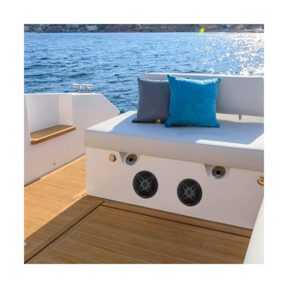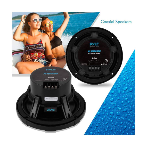 Enhance your marine audio system with the Pyle 6.5" Waterproof Marine Speakers, model PLMRF65SB. These speakers are built for durability with marine-grade waterproof construction, ensuring they withstand harsh weather conditions. Enjoy wireless RF streaming for a seamless audio experience with extended range. The 2-way full-range stereo sound provides impressive bass and clear highs, making these speakers a perfect addition to your boat, car, or off-road vehicle. Pair them with the Pyle PLMRF65MB for a complete audio setup.