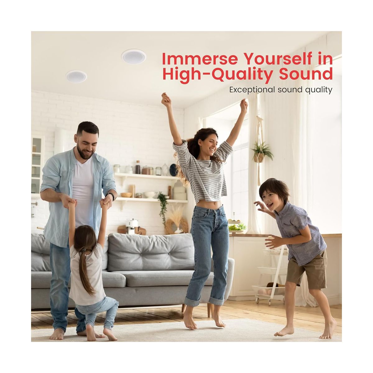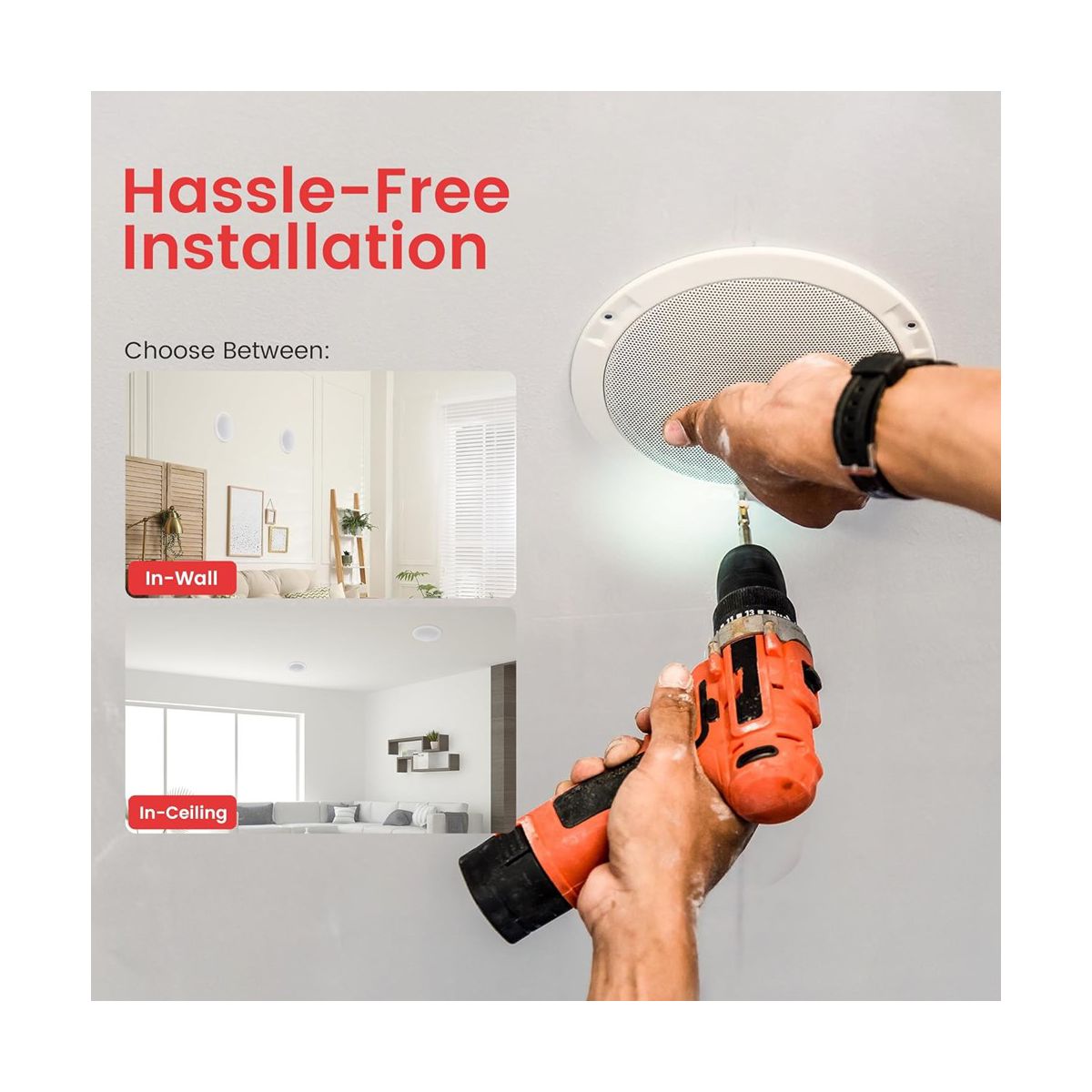 8" Ceiling Wall Mount Speakers for Home Audio with High-Quality Sound, Easy Installation, White Finish