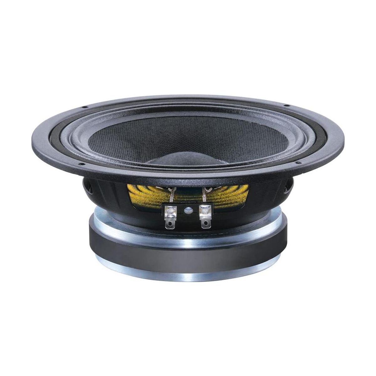 This 6-inch mid-range driver delivers high sensitivity and excellent power handling with a 95dB rating and 100Wrms (AES standard) capability. It features a 1.5-inch high-temperature copper voice coil wound on a polyimide former for enhanced reliability, a rigid pressed steel chassis for efficient energy transfer, and a vented magnet assembly for optimal cooling. This driver is ideal for use in compact enclosures and 2-way systems.