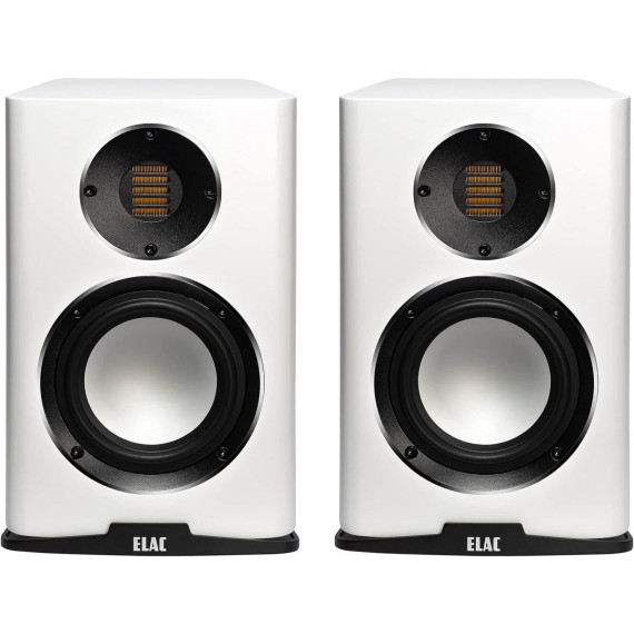 The Carina Bookshelf Satin Black Surround Sound Speakers from ELAC offer a fresh look and sound, designed to deliver remarkable audio quality even in small spaces. These compact home stereo speakers feature a JET tweeter, known for its exceptional clarity, dynamic range, and frequency response. The speakers also utilize a proprietary compound curvature aluminum cone woofer, seamlessly blended with a sophisticated multi-element crossover for an organic, lifelike sound. The JET tweeter also reduces sound distortion, offering better sound reproduction. The speakers' 5-1/4" woofer moves the cone breakup mode outside of the operating range, improving bass reproduction. With a 6-ohm impedance, these speakers offer cleaner sound compatible with nearly all amplifiers and receivers. The Carina speakers also have a downward firing port for flexible room placement and even bass distribution. Finished with satin paint and a cast aluminum base, these speakers add a touch of sophistication to any home interior