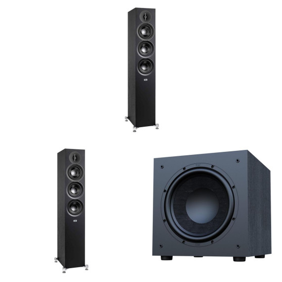 Elac Debut 3.0 Df53 Black Tower Speakers (Pair) With Debut 12 Inch Subwoofer