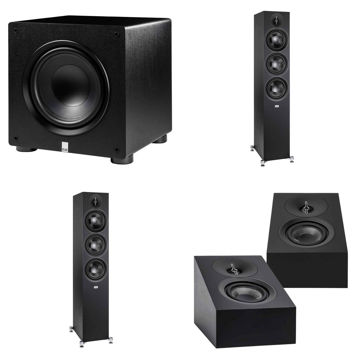Elac DF63-BK - Debut 3.0 6.5" Floor Speaker - Black (Pair), ELAC DA43-BK Debut 3.0 - DA43-BK Atmos / On Wall speaker, Elac PS350 Subwoofer