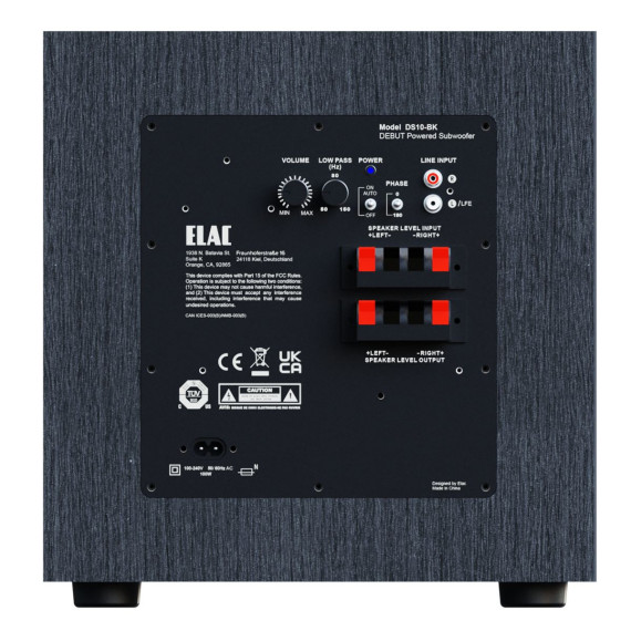 ELAC DS103-BK 10" Debut 3.0 Powered Subwoofer – 200W Peak Class D, Sealed Cabinet, 31Hz Low-Frequency Extension, LFE & High-Level Inputs – Black Ash