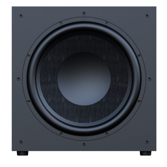 A massive 15" high-excursion polypropylene cone with textured surface extends bass output to 25Hz (-3dB) and 23Hz (-6dB) with precision and authority.
