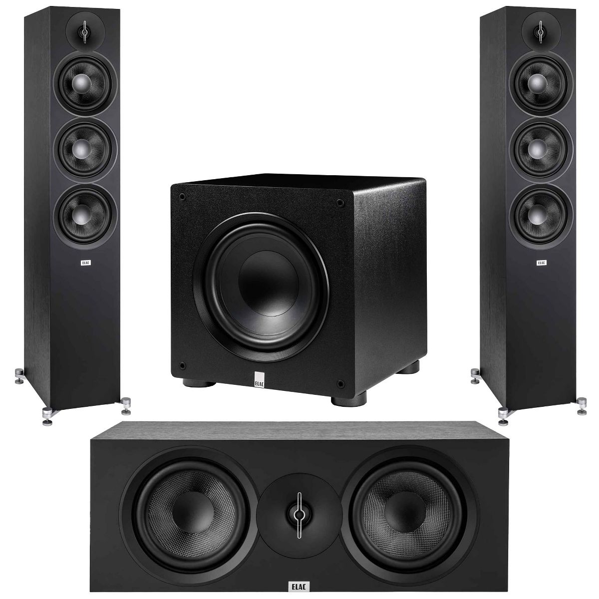 Elac - Two DF63-BK - Debut 3.0 6.5" Floor Speaker - Black, Elac DC63-BK - Debut 3.0 6.5" Center Speaker - Black and Elac PS350-BK - Varro Premium 1...