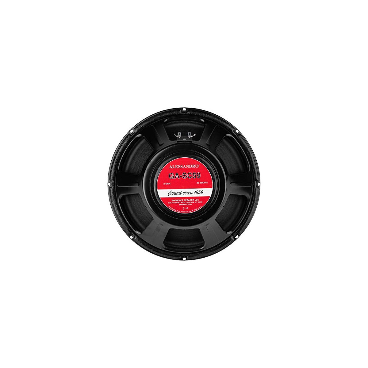 Circa 1959 tone in a vintage American alnico magnet design, approved by George Alessandro. Punchy lows, full lower-mid grunt, and articulate chimey highs balance out this versatile and musical 12” speaker.