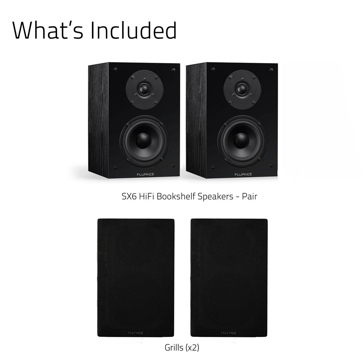 Fluance Elite High Definition 2-Way Bookshelf Surround Sound Speakers for 2-Channel Stereo or Home Theater System (SX6)