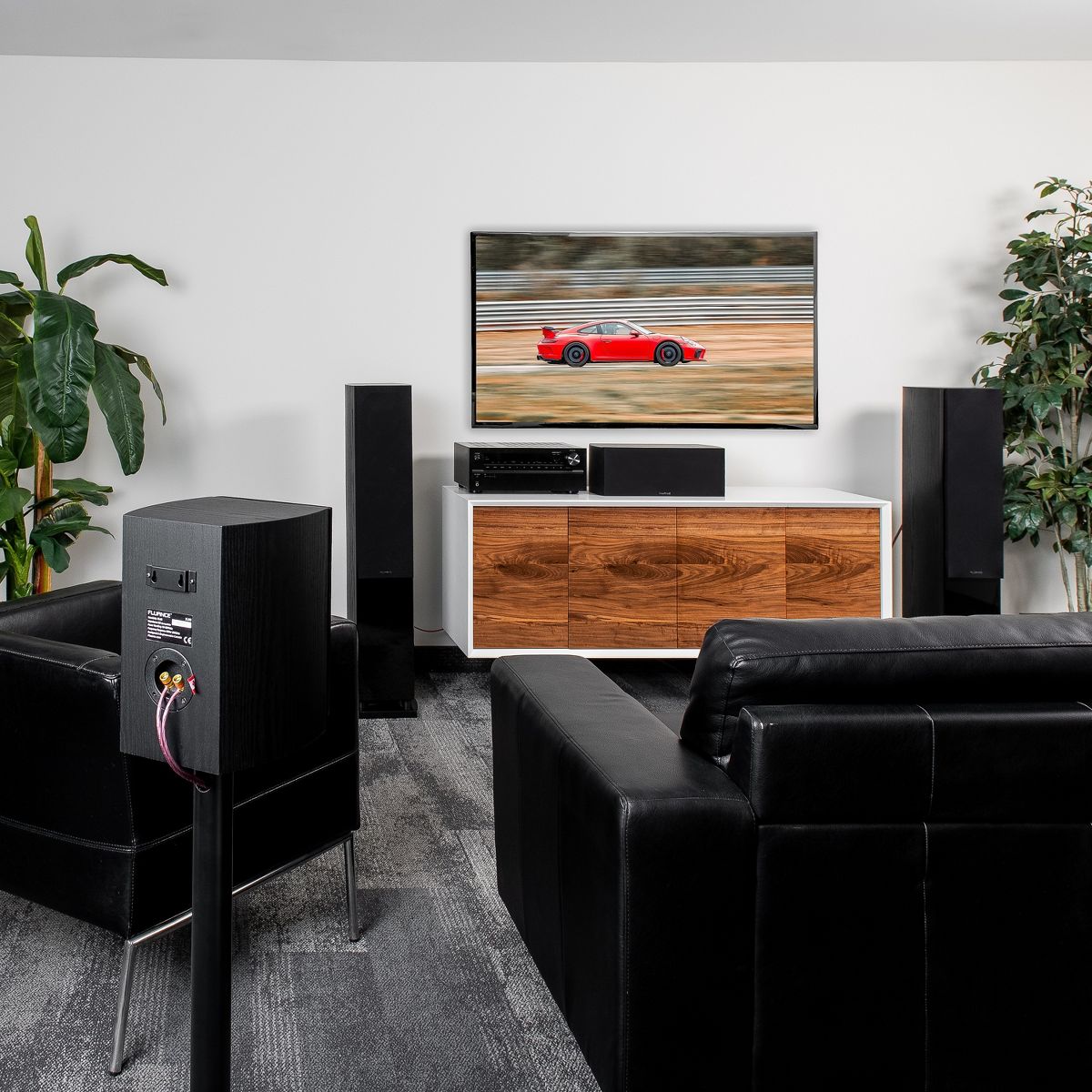 The meticulously designed acoustically inert wood cabinets have rigid internal bracing preventing unwanted resonance and is composed of separate internal enclosures keeping sound waves isolated to eliminate any acoustic interference. Dual rear ports in the woofer enclosures provide a controlled low-frequency response.