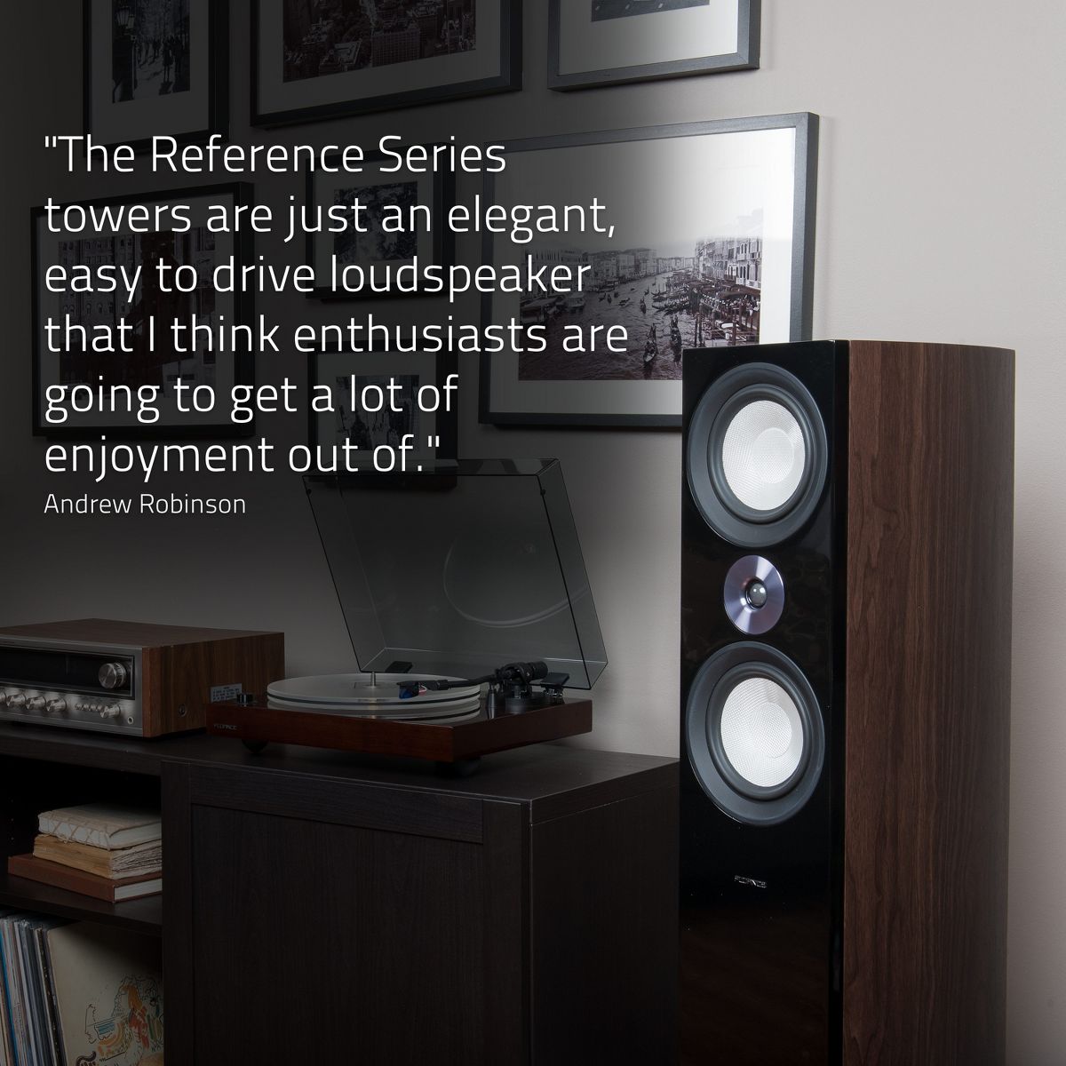 The meticulously designed acoustically inert wood cabinets have rigid internal bracing preventing unwanted resonance and is composed of separate internal enclosures keeping sound waves isolated to eliminate any acoustic interference. Dual rear ports in the woofer enclosures provide a controlled low-frequency response.