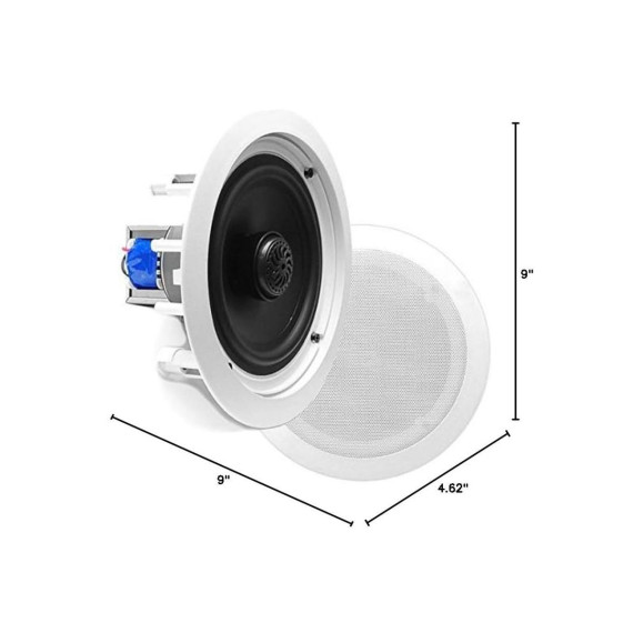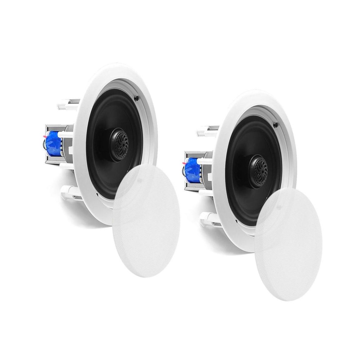 In-Ceiling Speaker System for Home Audio with Dual 6.5" Drivers, Easy Install, White, Pair