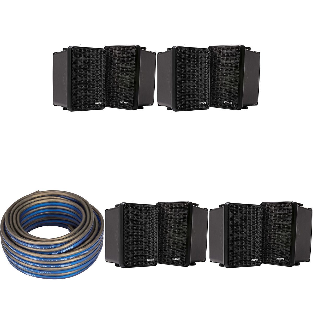 Kicker (4 Pair ) KB6B 2-Way Full Range Indoor Outdoor Speakers (Pair) Weatherproof Speakers for Patio Garage Poolside in-Home, Black & 20ft Speaker...