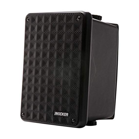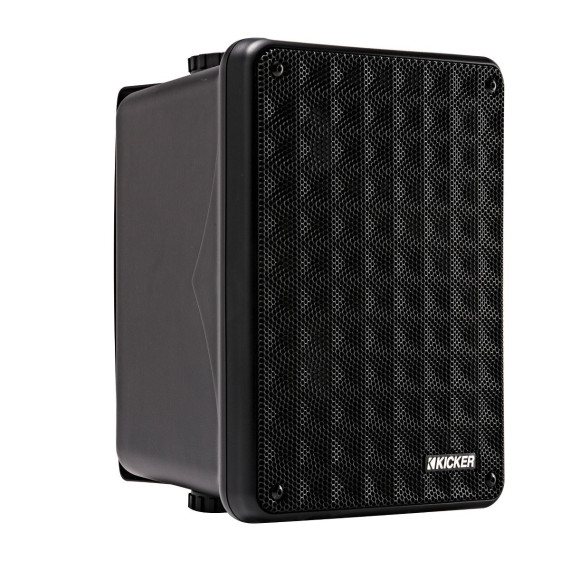 Kicker 46KB6B Black KB6 Outdoor/Indoor full-range, high-efficiency Speakers - 4 Pair. Rock that legendary KICKER sound inside, outside or out and about! Play the KB6 on your backyard deck, under the eaves, inside the shop, or near the pool for great sound, rain or shine. You can even go mobile! Use the universal bracket to mount the KB6 on your boat, off-road vehicle or RV. The KB6 is a full-range, high-efficiency speaker system truly suitable for indoor and outdoor use. Providing an 8-Ohm load and ready to be driven by your home stereo receiver or a car-audio amplifier, you can easily run a single pair or more with minimal effort (min. 18 AWG speaker wire required for easy-pinch terminals). The included bracketing makes it easy to install vertically or horizontally - on nearly any flat surface. Designed as a dual-enclosure weatherproof system, the KB6 features bold 6-1/2 -inch KICKER woofers and 2 x 5-inch, compression-loaded horn tweeters. The woofers utilize precisely tuned polypropylene cones and rugged Santoprene® surrounds. The system acoustically blends powerful bass and thrilling highs for an all-weather KICKER sound you’ll love to listen to all day long. Specifications - • Type: 2-way • Components per enclosure (in., cm): 6-1/2, 16.5 Woofer; 2x5, 5.1x12.7 tweet • Max Rec Amp Power (watts PEAK/RMS)*: 150/75 • Frequency Response (Hz): 55-21k • Standard Dimensions (in.): 11W x 8-1/8H x 8-1/8D • Metric Dimensions (cm.): 27.9W x 20.7H x 20.7D • Impedance (ohms): 8 • Sensitivity (dB 1w/1m): 90 • Grilles: Yes