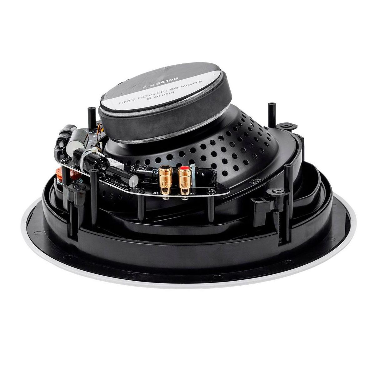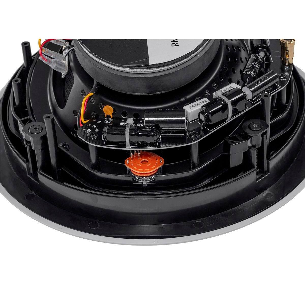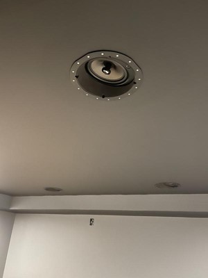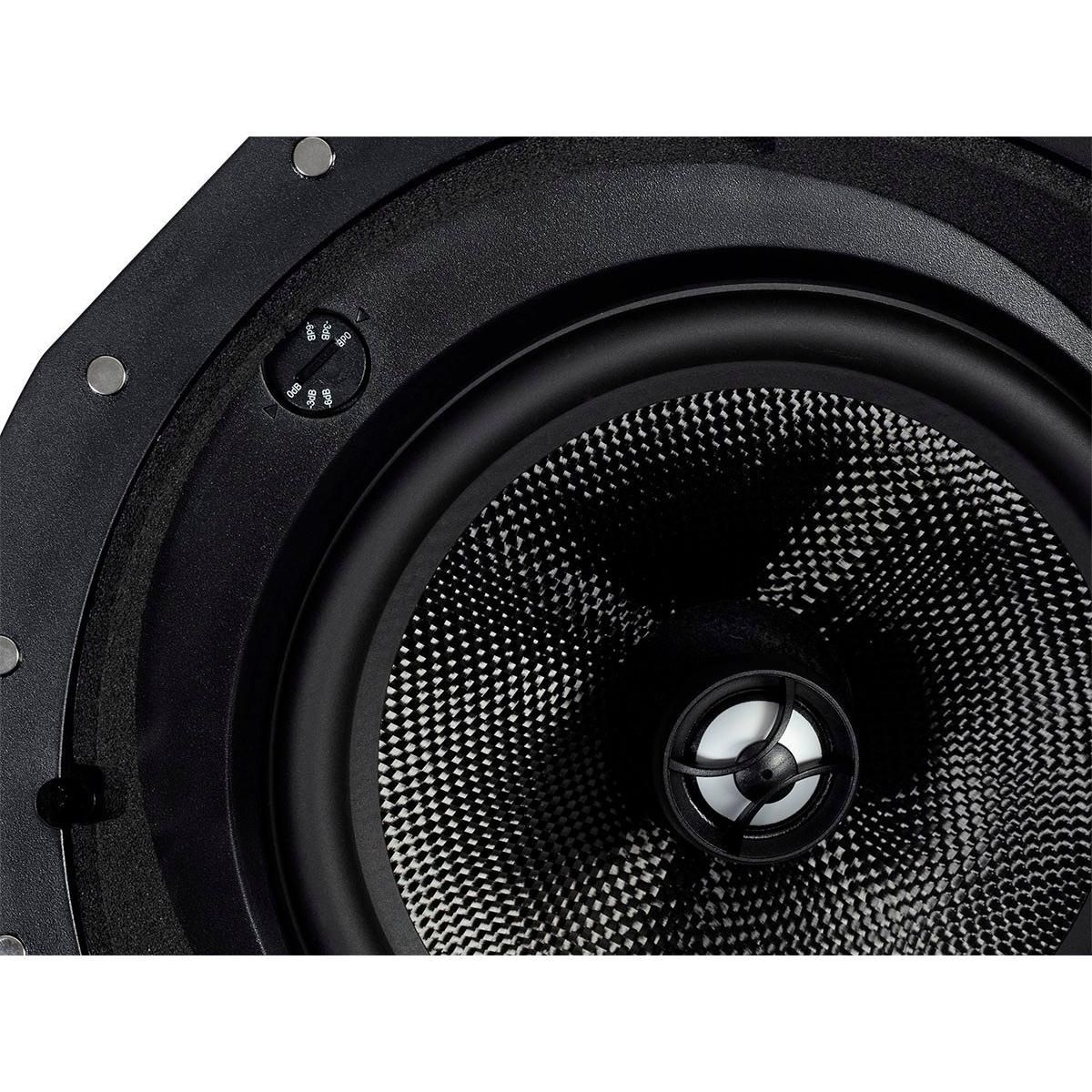This carbon fiber in-ceiling speaker is the perfect combination of performance and style. The use of carbon fiber for the woofer means that the speaker can hit harder, go lower, and handle more power with significantly less distortion than conventional drivers. The silk dome tweeter produces clean, crisp, and clear highs and mids. You can fine tune the blend of sound using the built-in high frequency attenuator in case the sound is too bright. The metal grille can be painted to match your ceiling and attaches easily using magnets.