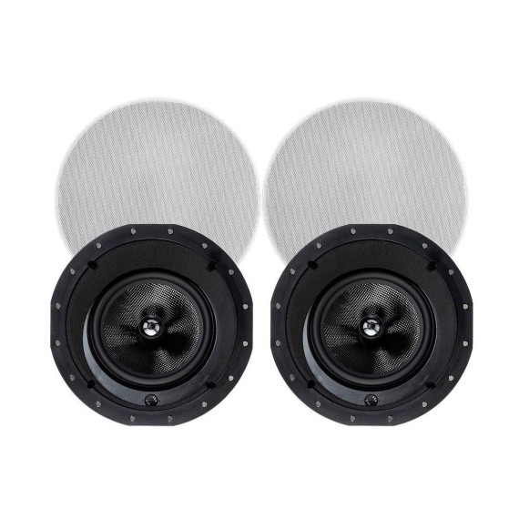 Monoprice 2-Way Carbon Fiber In-Ceiling Speakers - 8 Inch With 15 Degree Angled Drivers (Pair) - Alpha Series