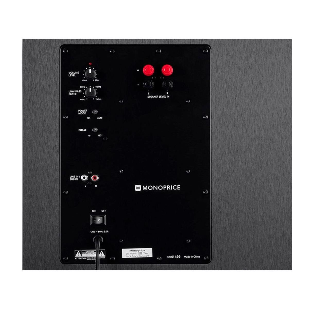Monoprice SW-15 600 Watt RMS 800 Watt Peak Powered Subwoofer - 15in, Ported Design, Variable Phase Control, Variable Low Pass Filter, For Home Theater