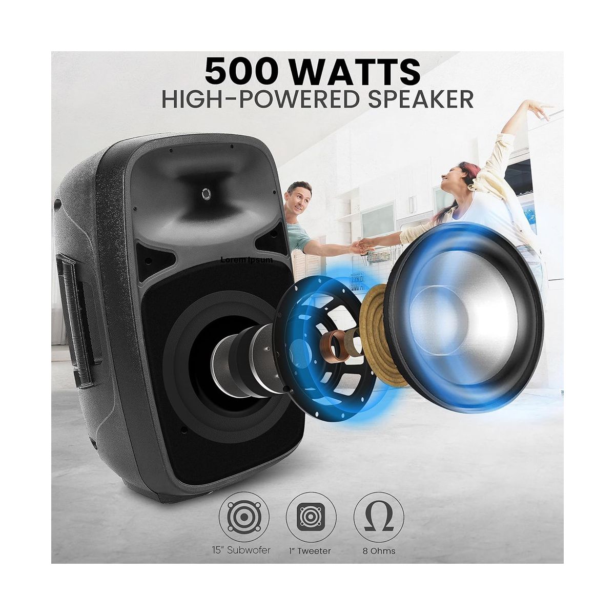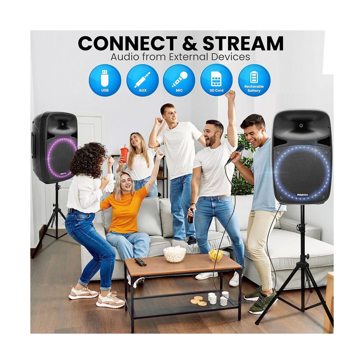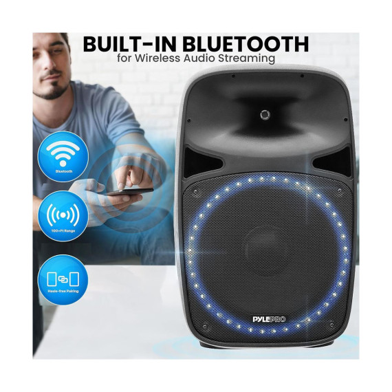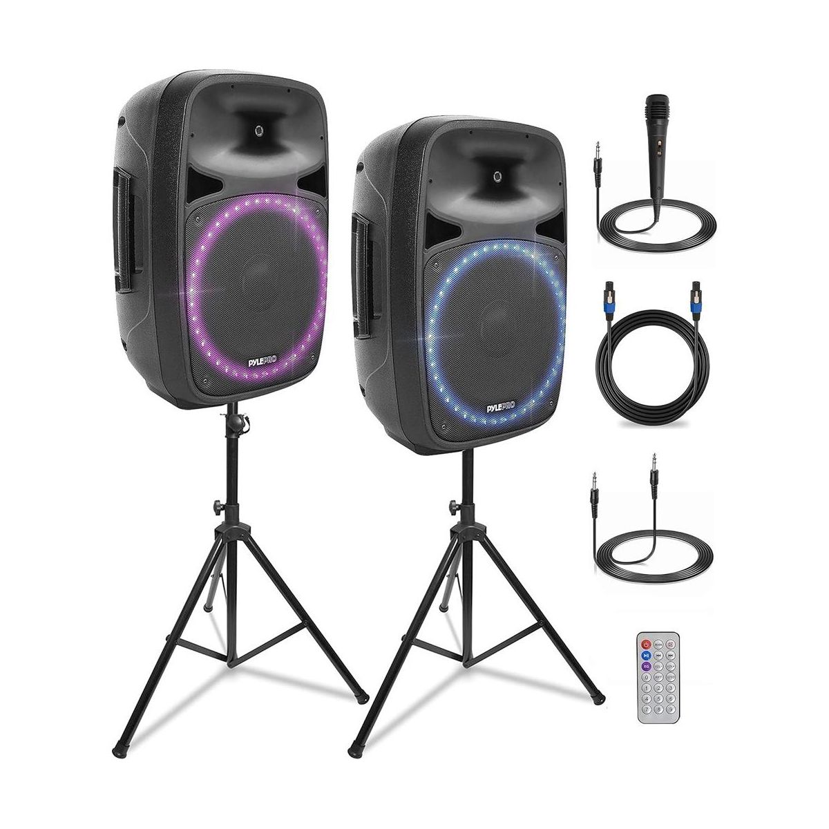 Pyle 15" Bluetooth PA Speaker System, Dual 15" Woofers, USB/SD Readers, Black