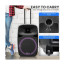 This PA system features a digital LCD display with FM radio, making it easy to access and control your music. The rear panel includes a rotary dial and button control center for adjusting the master volume, mic volume, line volume, treble, and bass. With multiple input options, including 1/4’’ microphone input, 3.5mm stereo line input, RCA (L/R) line input, and XLR line output, you can connect various devices and instruments.