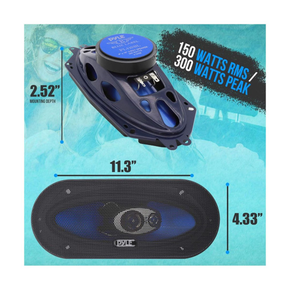 Upgrade your vehicle's audio system with the Pyle PL410BL 3-Way Universal Car Stereo Speakers. Designed for superior sound quality, these 4" x 10" triaxial speakers deliver 300 watts of max power, providing a rich and immersive audio experience. The speakers feature a blue poly injection cone and butyl rubber surround, ensuring durability and consistent performance. With a high-temperature ASV voice coil, neodymium film dome midrange, and piezo tweeter, these speakers produce clear, distortion-free audio across all frequencies. The universal design makes them a quick and easy replacement for OEM speakers, compatible with most vehicle door and side panel mounts.