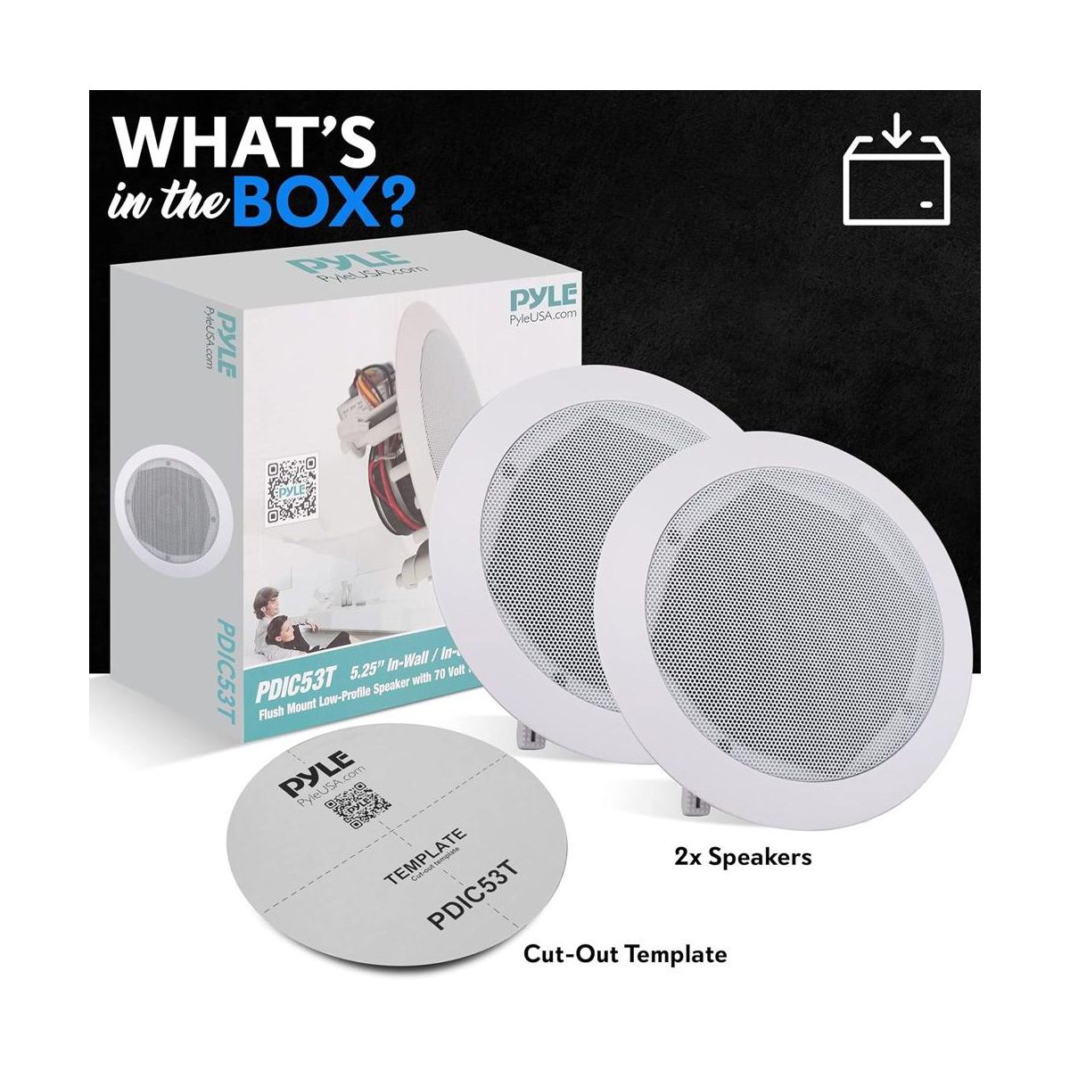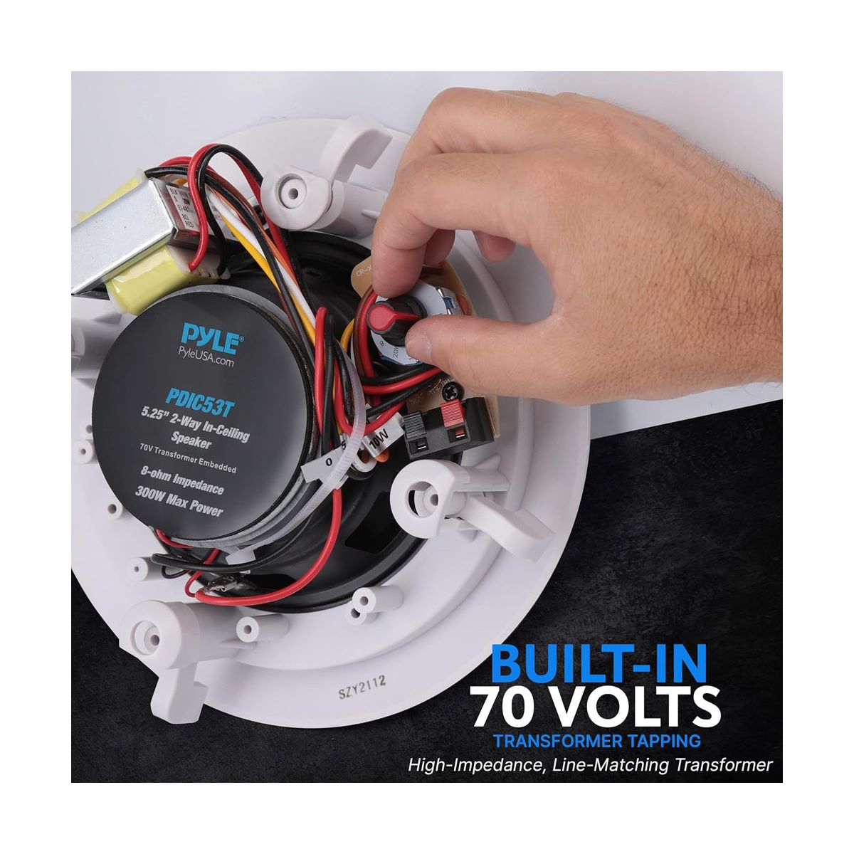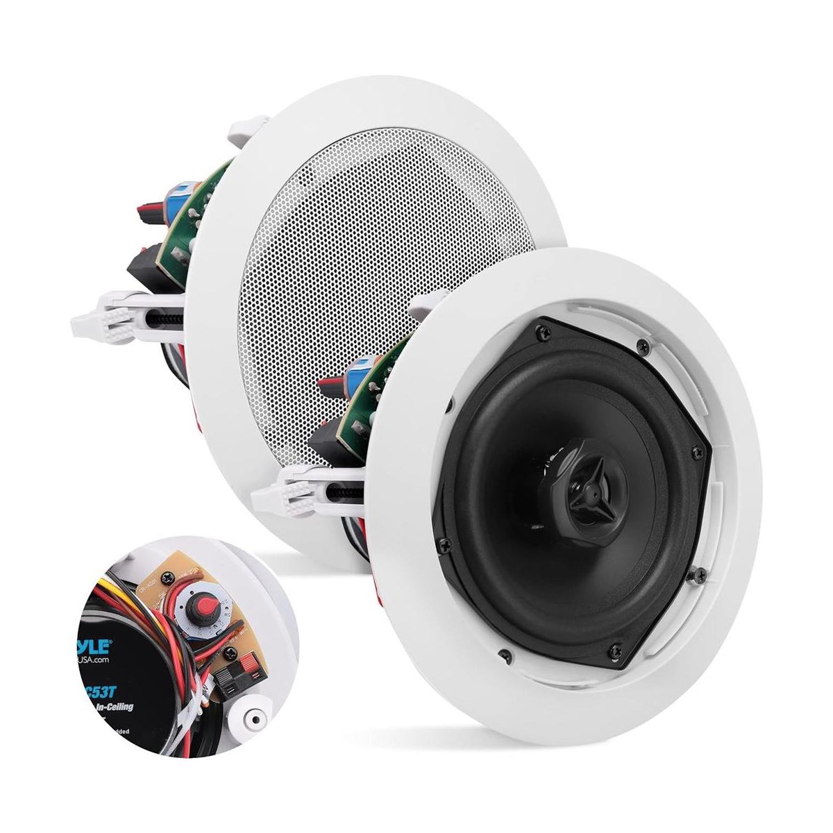 Pyle 5.25" In-Wall/Ceiling Speakers with 70V Transformer - 2-Way, 300W - PDIC53T