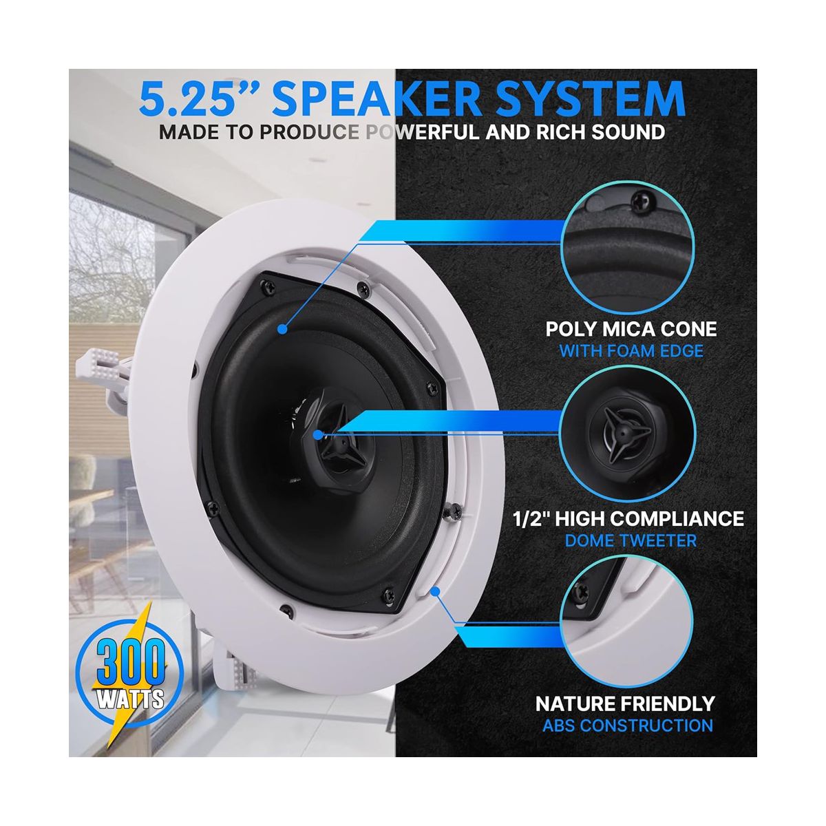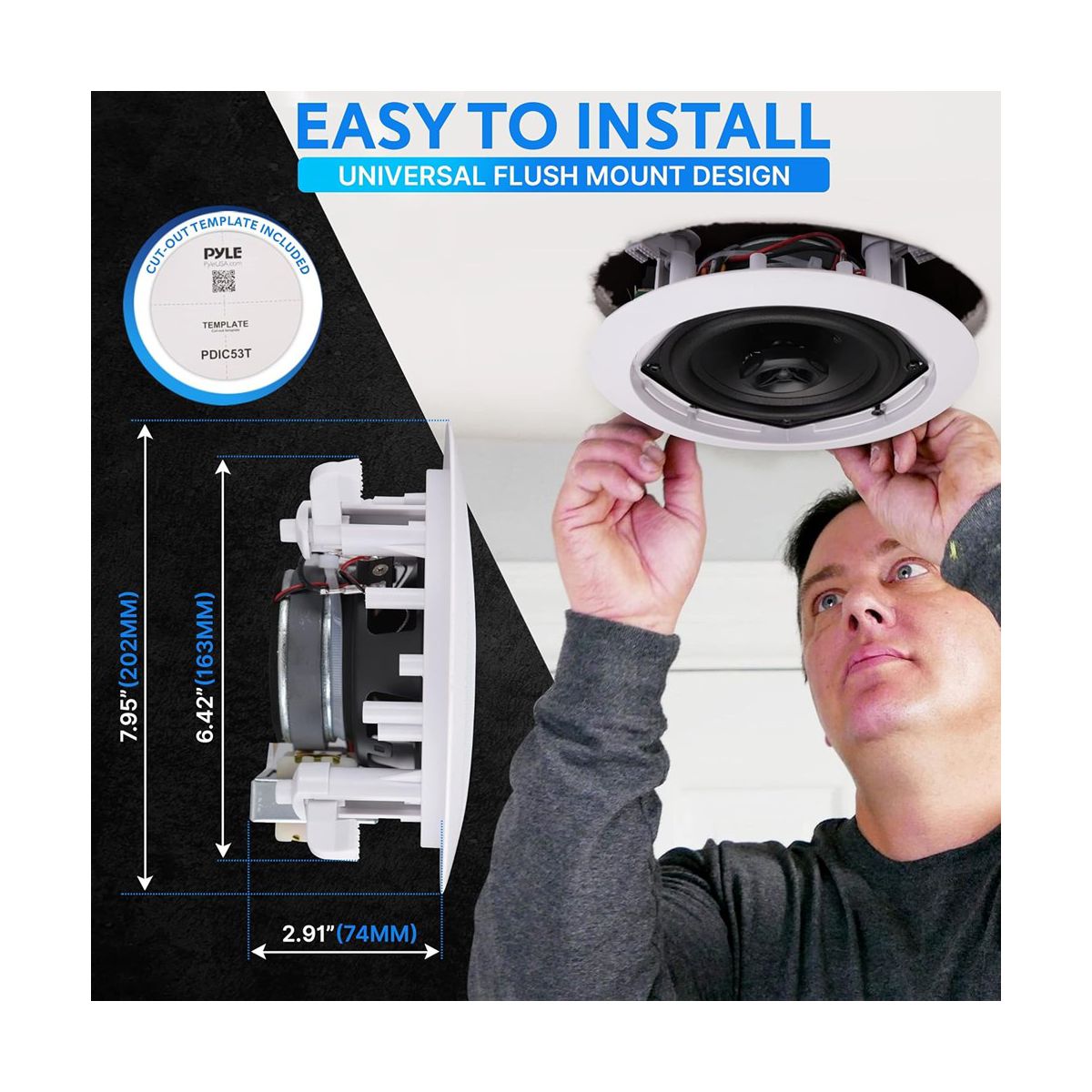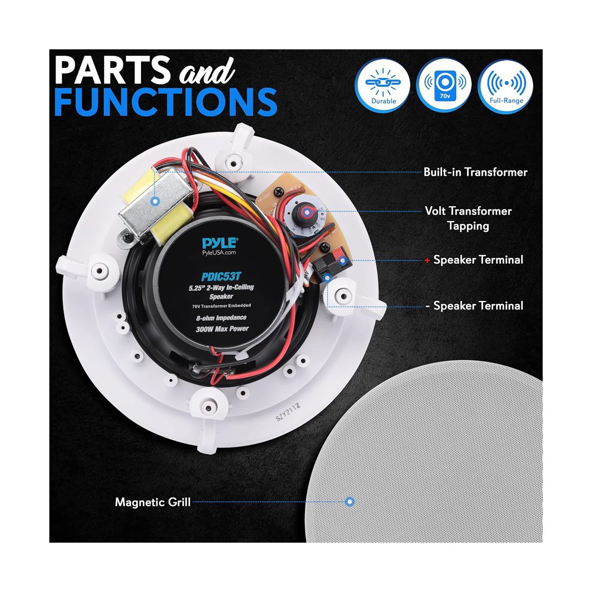 Pyle 5.25" In-Wall/Ceiling Speakers with 70V Transformer - 2-Way, 300W - PDIC53T