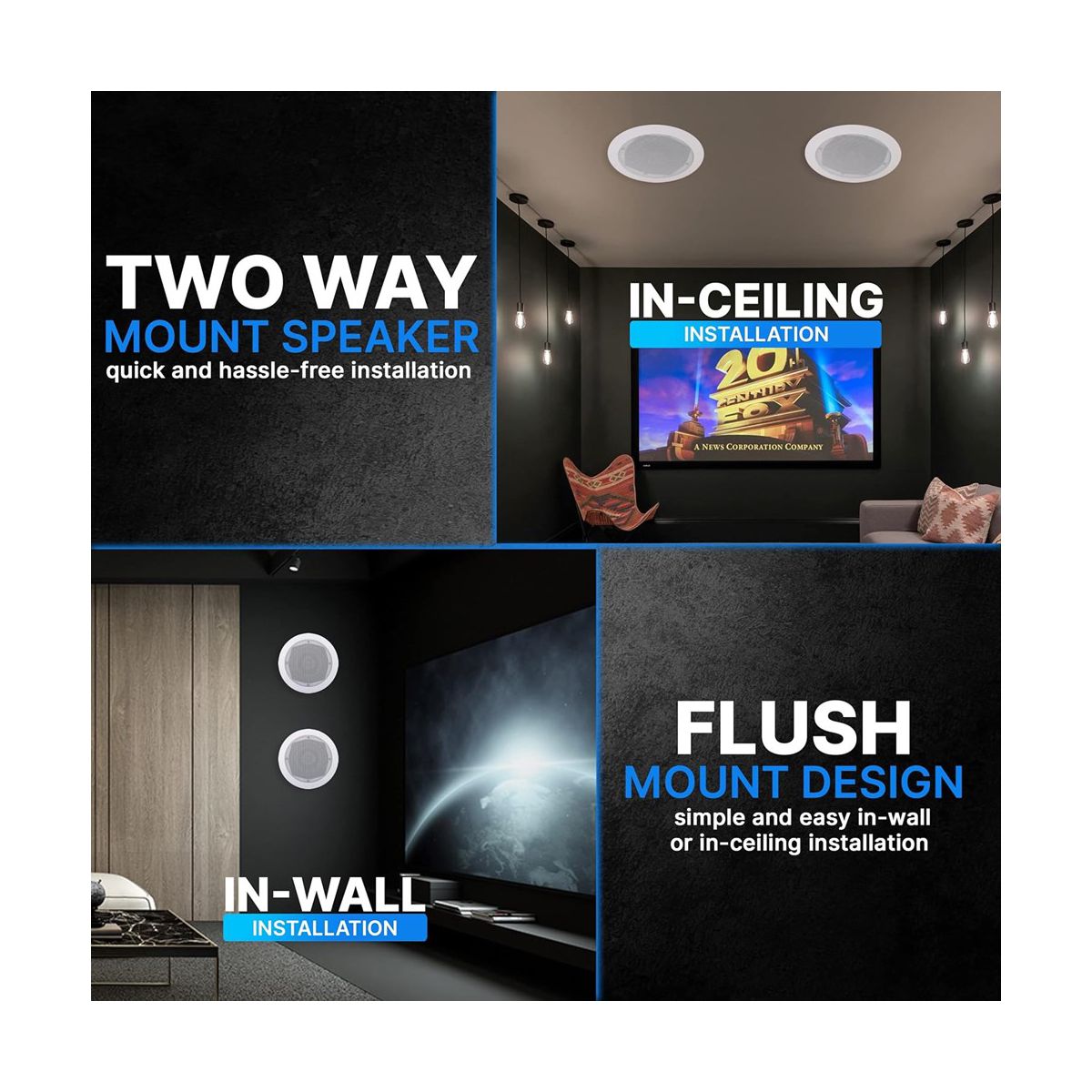 The Pyle 5.25" In-Wall/Ceiling Speakers with 70V Transformer are designed to deliver powerful and efficient audio in any room. Featuring a directable 1/2" high compliance dome tweeter and a 5.25" speaker, these speakers provide wide-range sound performance from 85Hz to 20kHz. The built-in 70V transformer allows for efficient audio distribution, making these speakers ideal for both home and office settings.
