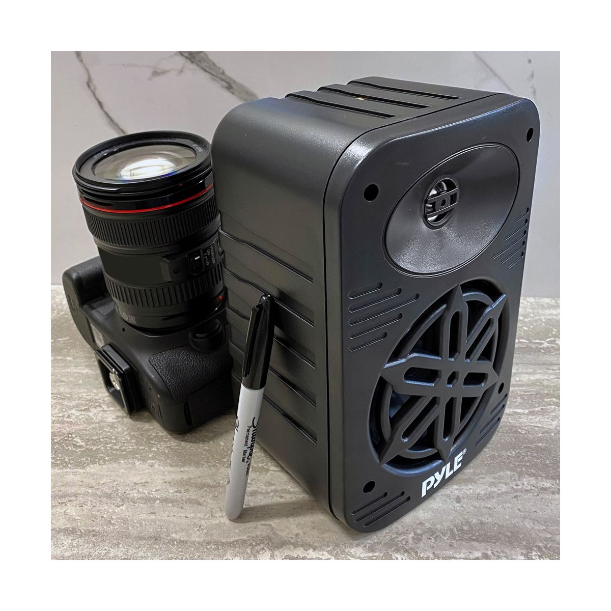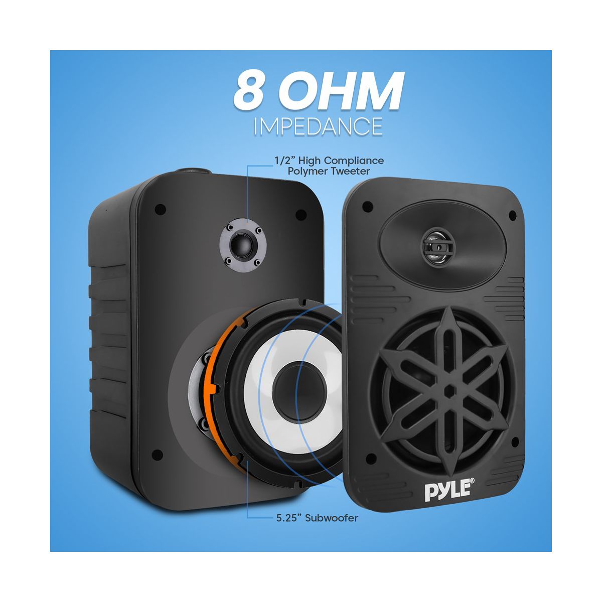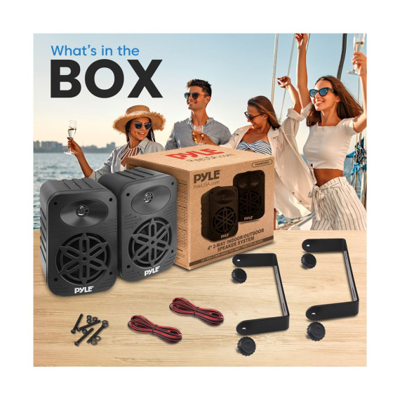 Enjoy high-quality sound outdoors with the Pyle 5.25" Waterproof Outdoor Speaker System. Designed for durability and excellent audio performance, these speakers feature a 5.25" long-throw woofer that delivers deep bass and a 1" tweeter for clear high frequencies. The waterproof design ensures reliable performance in all weather conditions, making them perfect for patios, decks, and poolside areas. You can easily stream your favorite music wirelessly from any compatible device. The speakers are easy to install with the included wall-mounting hardware, providing a seamless addition to your outdoor space. Durable and weather-resistant, the Pyle Outdoor Speaker System offers robust sound quality for all your outdoor entertainment needs. What's Included: