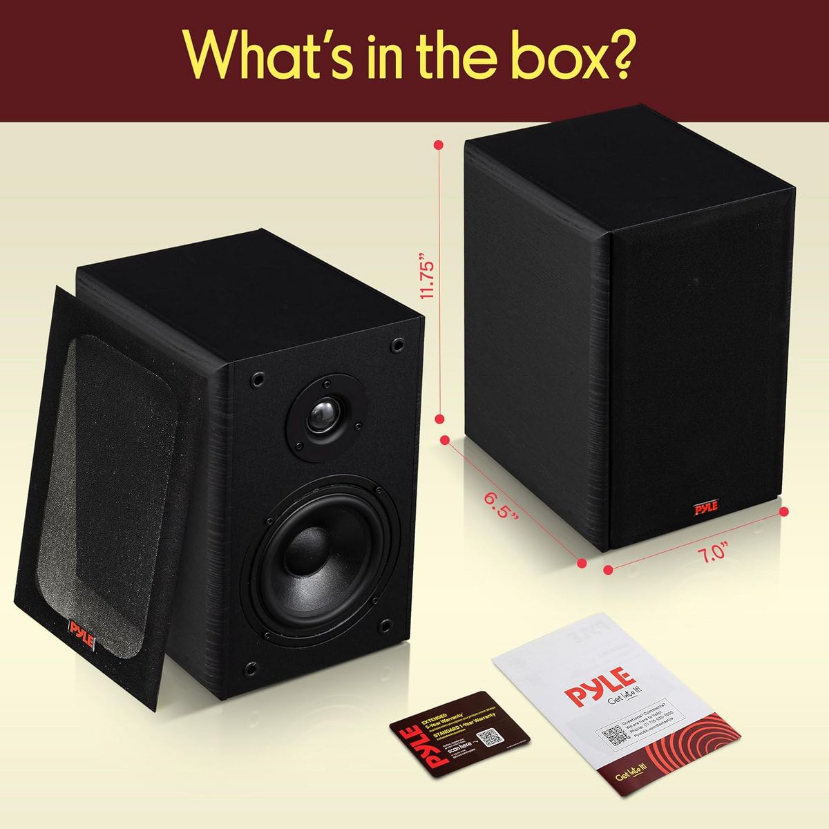 Pyle 6.5" Home Theater Wooden Bookshelf Speakers - 2 Way HiFi Sound with Built-in Wall Mount Bracket for Easy Installation (Pair) -(Black)
