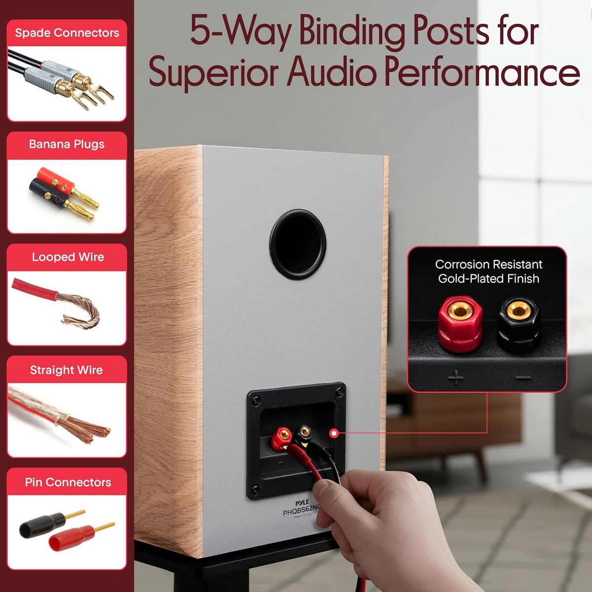 Pyle 6.5" Home Theater Wooden Bookshelf Speakers - 2 Way HiFi Sound with Built-in Wall Mount Bracket (Pair) - MKTPHQBS62NC