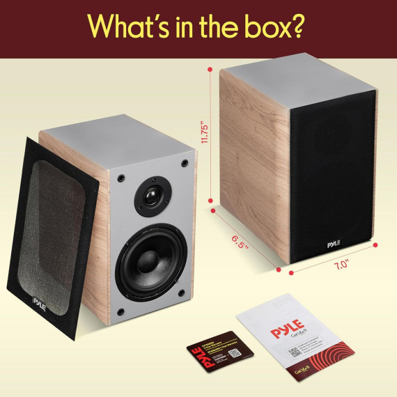 Elevate your home audio experience with the Pyle 6.5" Home Theater Wooden Bookshelf Speakers. Designed to deliver dynamic sound in a compact form, these speakers feature a 2-way HiFi design with a 6.5" woven glass fiber woofer and a 0.75" silk dome tweeter. The sleek, wooden construction not only looks great in any space but also enhances sound quality. These speakers are ideal for home theater setups, delivering crisp highs and deep bass for an exceptional listening experience. The built-in wall mount bracket ensures easy installation, making these speakers versatile and perfect for a variety of audio setups.