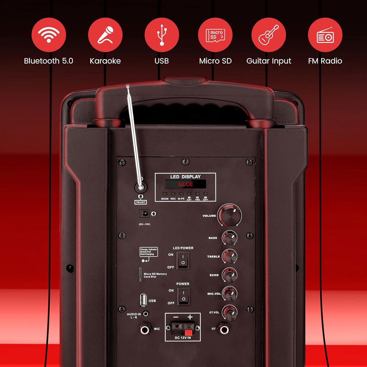 Pyle 8” Bluetooth Portable PA Speaker - Portable PA & Karaoke Speaker with Two Wireless Microphones