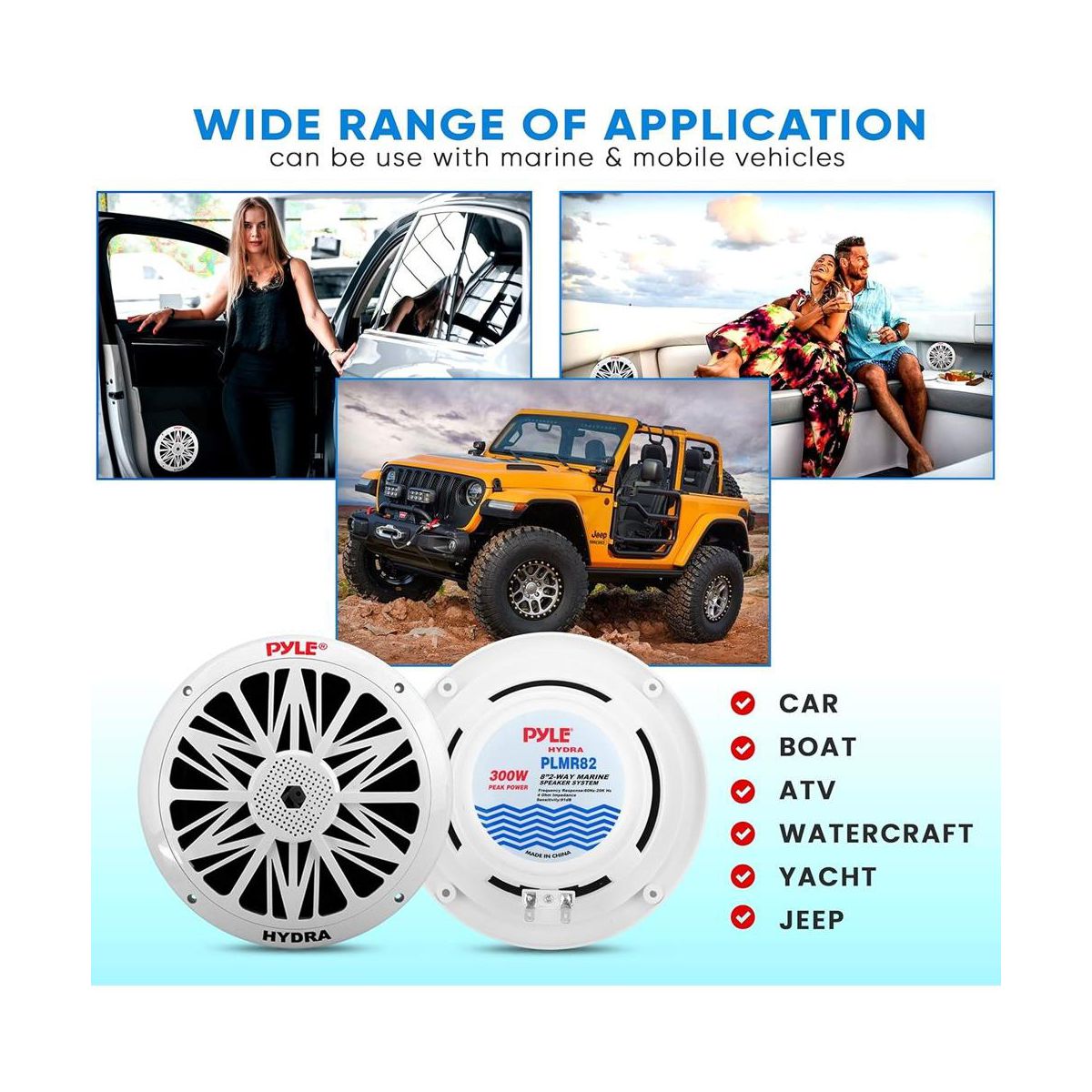 Upgrade your sound system with Pyle's Hydra series 8'' Marine Grade Component Speakers. These speakers are specifically designed for marine environments, featuring a weather-resistant construction that ensures durability and longevity whether you're on a boat, by the pool, or enjoying outdoor activities. With a powerful 300W max power output and a full-range stereo sound, your music will come alive with clear and rich audio. The dual cone design includes a poly carbon cone and a cloth surround for optimal sound reproduction. Equipped with a ½'' neodymium dome tweeter, these speakers produce crisp highs, while the high-temp aluminum voice coil enhances overall sound quality. Installation is made easy with the included mounting hardware and speaker wire. Invest in superior sound with Pyle's reliable marine speakers.