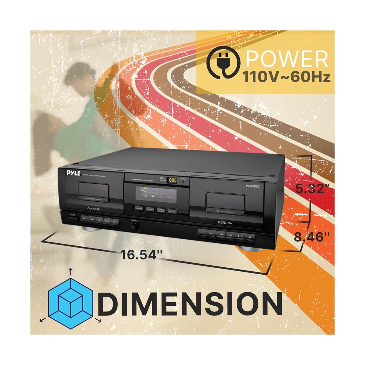Pyle Dual Stereo Cassette Tape Deck - Black