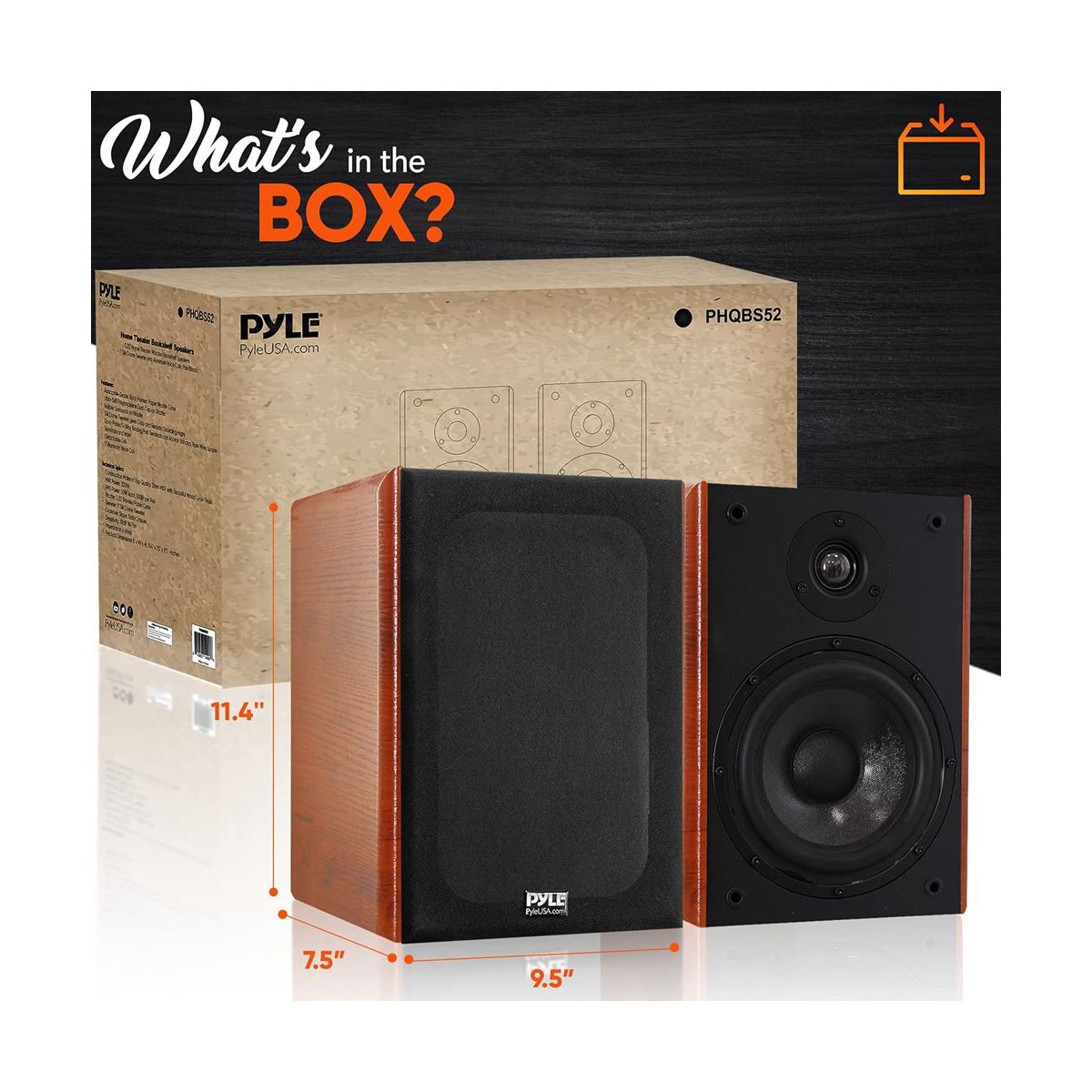 Pyle Home Theater Bookshelf Speakers - PHQBS52, 5.25" Woofer, 1" Silk Dome Tweeter, Pair, Black