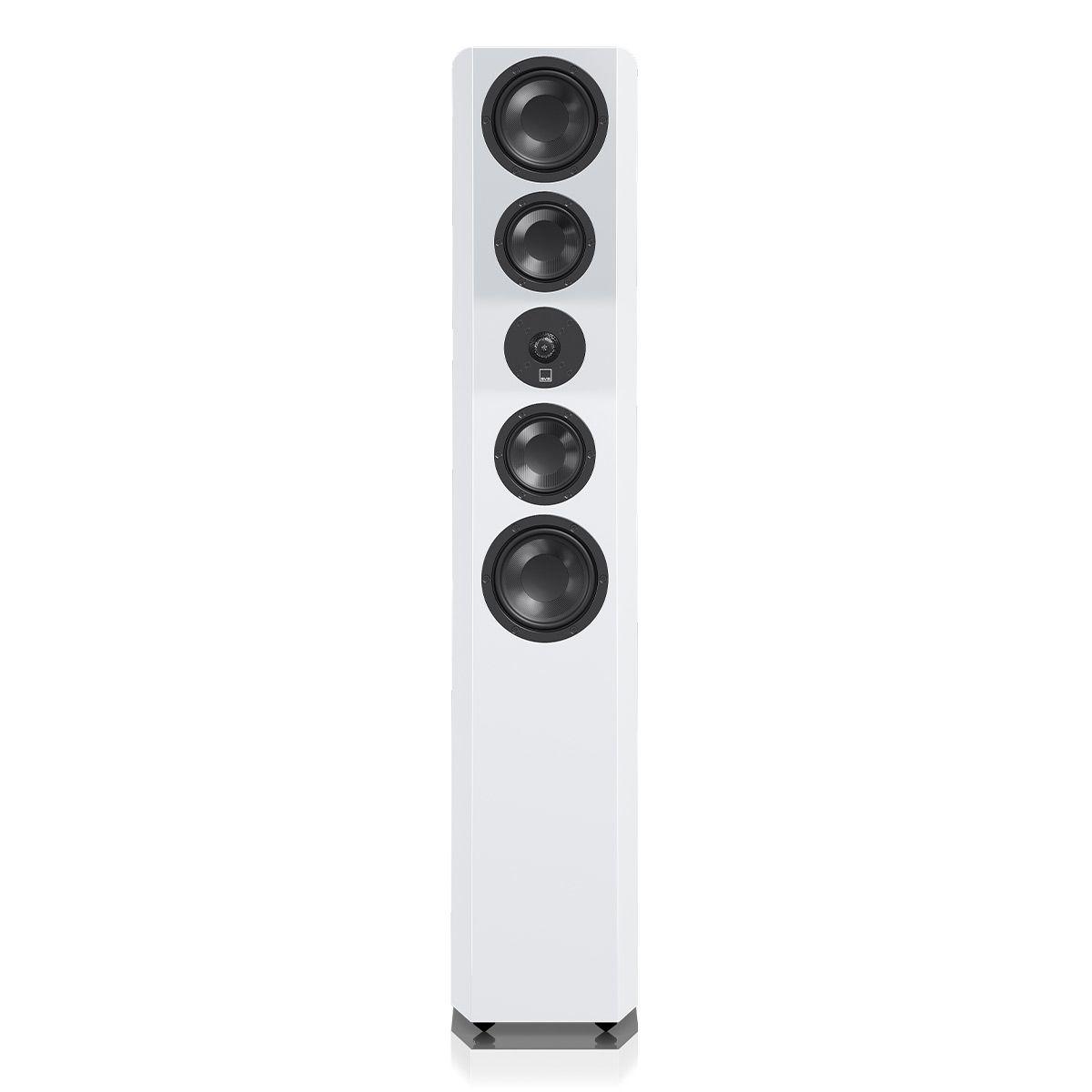 Quad 5.25” Glass Fiber Woofers in Force Balanced ArrayDual opposing active woofers on the top and bottom of the cabinet render effortless low frequency response while addressing room modes. Deep authoritative bass is evenly spread throughout the listening area. Mechanical energy from each front-firing woofer is equaled inside the cabinet by the rear-firing woofer eliminating mechanical coloration for pure accurate low frequencies at any playback level.