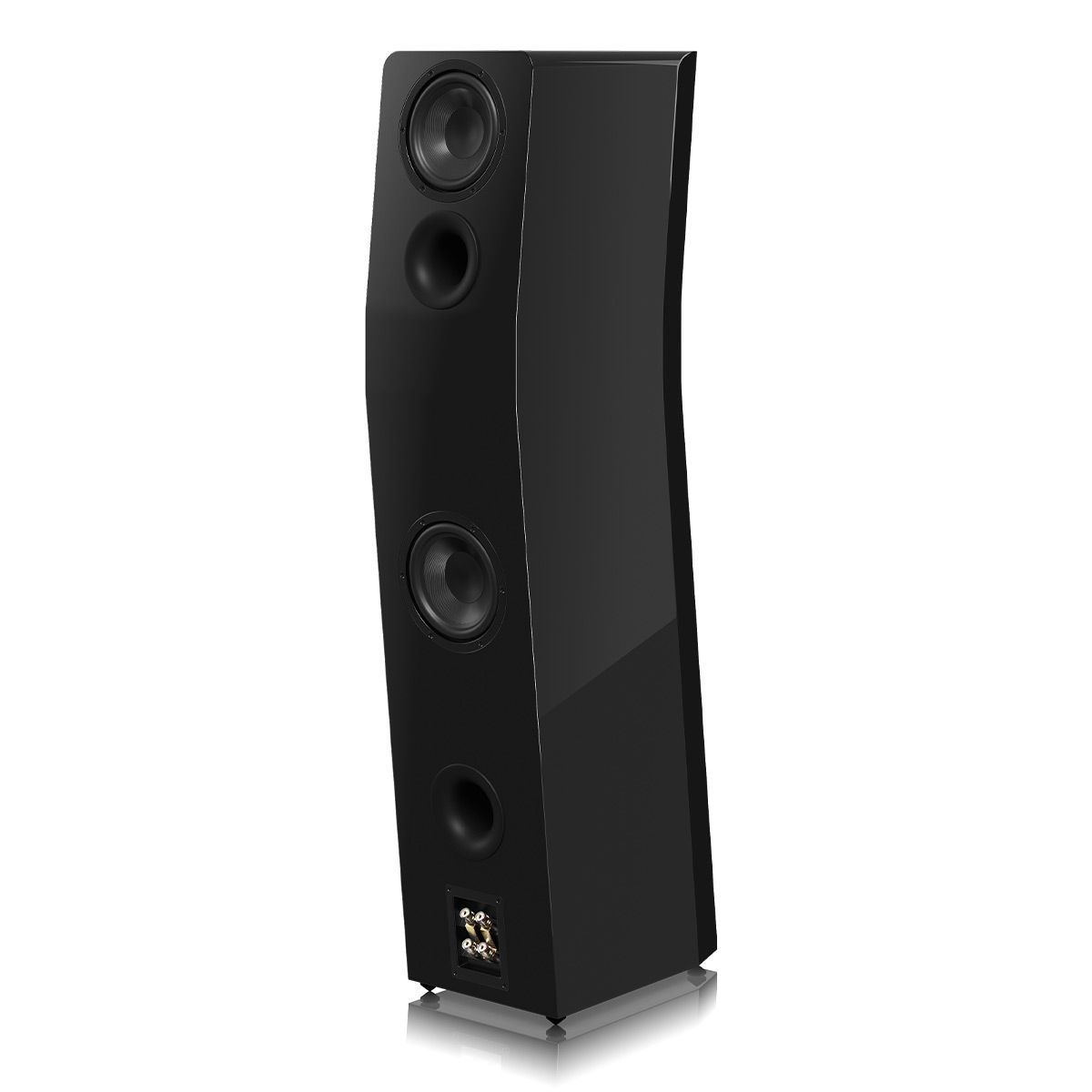 Acoustically Centered Time Alignment Cabinet ArchitectureCurved front baffle aligns all drivers on a vertical plane ensuring sound from each driver reaches your ears at the exact same instant. This maximizes phase coherence for more convincing and immersive soundstage with pinpoint accuracy and imaging. Midrange drivers and woofers are positioned above and below the tweeter allow for seamless crossover blending to create an idealized “point-source” where sound emanates from single point in front of the speaker to optimize dispersion characteristics.
