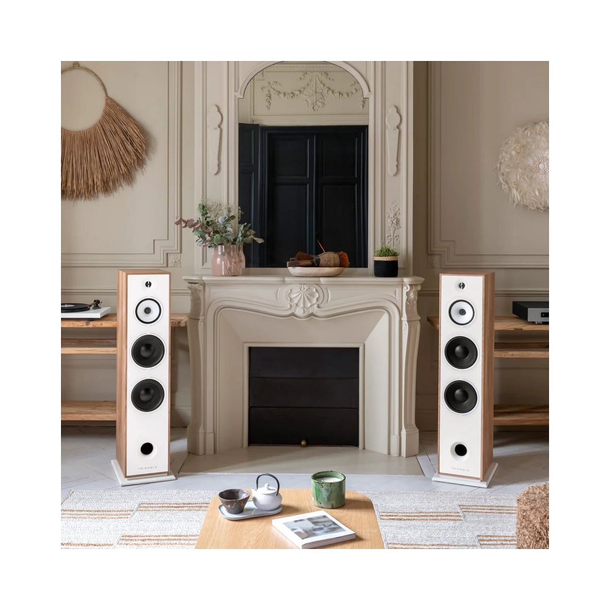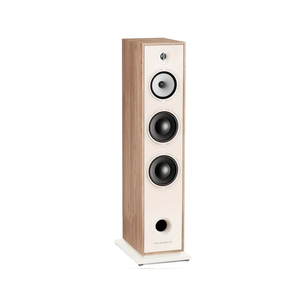 The flagship Triangle BR10 speaker stands as the pinnacle of the BOREA range, featuring 8in bass drivers that enhance bandwidth and power handling while preserving the signature TRIANGLE sound quality. The BR10's three-way design includes a 25mm EFS tweeter and a 6in midrange driver made from cellulose pulp, with the new 8in bass drivers using fiberglass membranes paired with a powerful motor for smooth, fast, and controlled bass. This model introduces a new architecture with a separate crossover system and dual terminals for bi-wiring or bi-amplification, and with a high sensitivity of 92dB, the BR10 pairs well with most powerful amplifiers on the market.