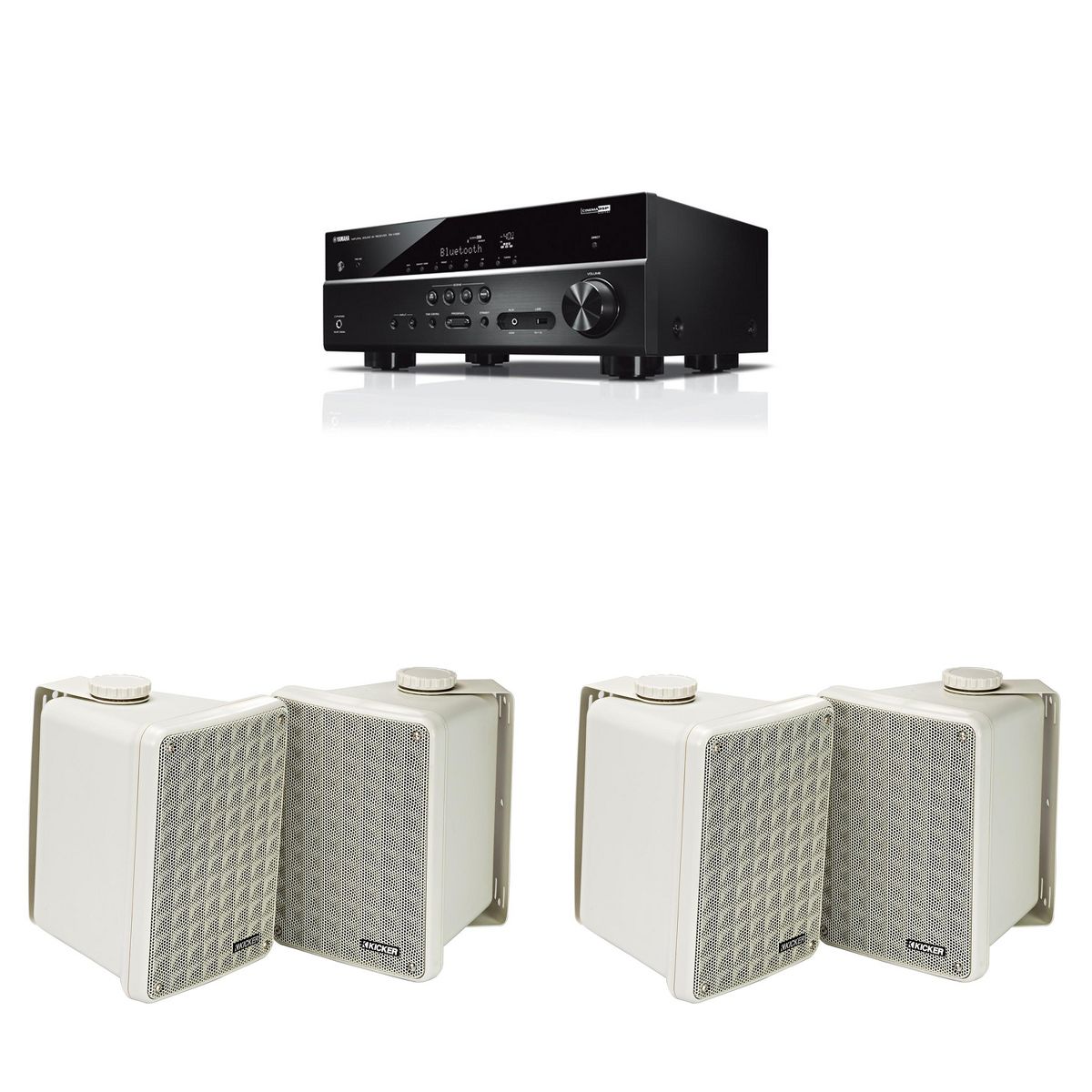 Yamaha RX-V385 5.1 Channel 4K AV Receiver w/ ( 2 Pair ) Kicker KB6G 2-Way Full Range Indoor Outdoor Speakers (Pair) Weatherproof Speakers for Patio...