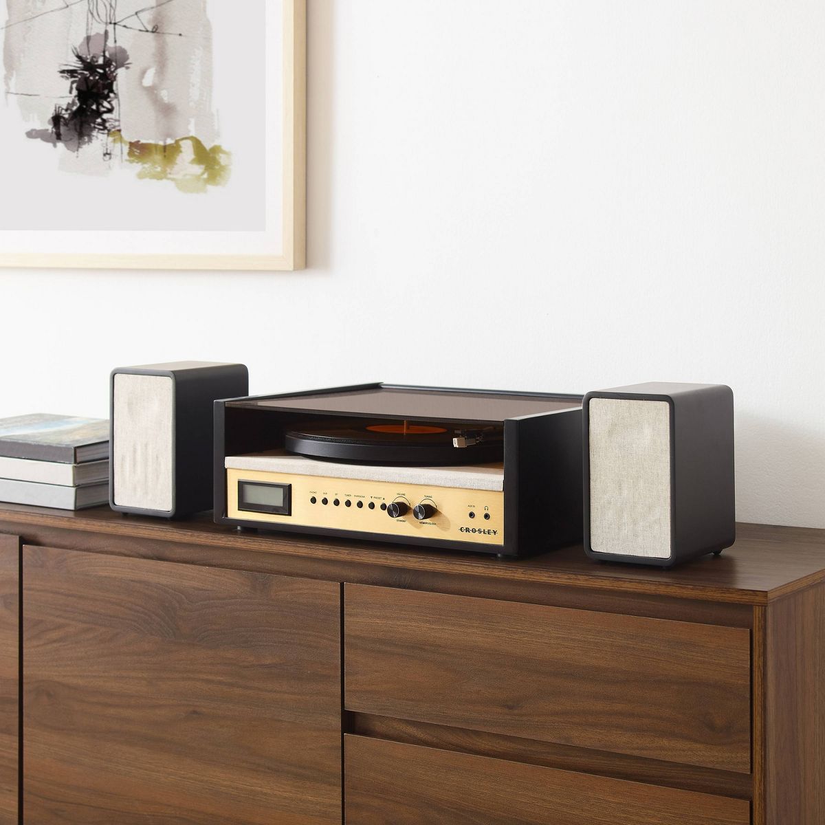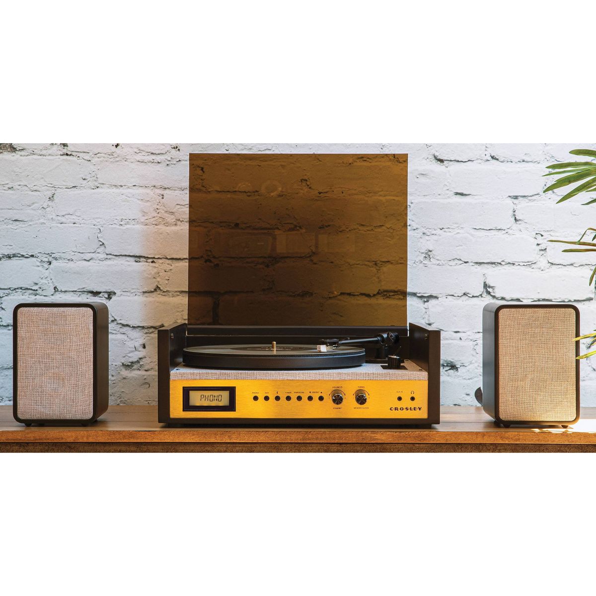 Crosley Coda Shelf System Vinyl Record Player - Black/Gold: Bluetooth 3-Speed Turntable