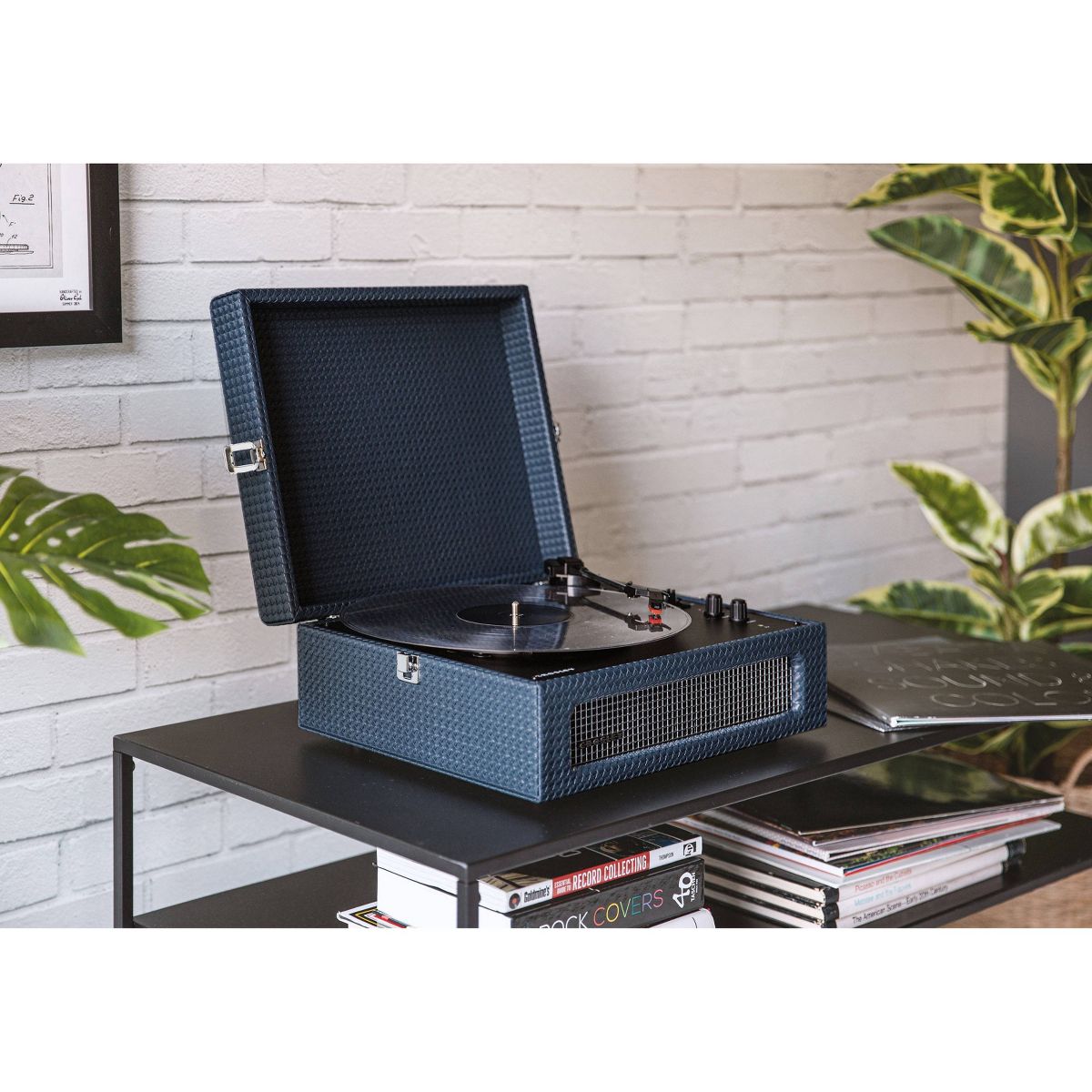 Join Crosley's mission to bring analog music to the masses with the Voyager three-speed turntable. The clean, vintage-inspired aesthetic fits into any space, while the lightweight design allows this record player to travel “further than anyone, or anything in history.” Spin 33 1/3, 45, or 78 RPM records or launch the built-in Bluetooth receiver to transmit your digital music wirelessly through the turntable’s stereo speakers. Discover the RCA outputs on the back that allow you to easily plug into your existing solar music system or bigger speakers to add propulsion to any party. Drop the needle on a reissue of the golden record, probe the adjustable pitch control knob to dial in the speed and prepare for blast off! 14.5”W x 12”D x 6”H