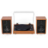 What's Included: Montrose Wireless Record Player with Dust Cover, Audio Technica AT3600L Cartridge (Pre-installed), Felt Turntable Mat, Counterweight, 45 RPM Adapter, 5ft 100V - 240V (50/60Hz) AC Power Adapter, 4ft RCA Cable with Ground Wire, EB30 Powered Bookshelf Speakers (pair), Remote Control, 2x AAA Batteries, 6ft Power Cord, 8ft 22 Gauge Speaker Wire, 4ft Aux to RCA Cable, User Manual, 1 Year Manufacturer's Warranty