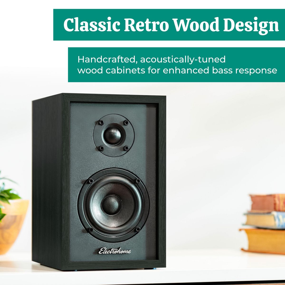 Featuring a stunning hand-crafted cabinet that is specially made with a rear port design to give a warm and free-of-resonance sound. Rear-facing controls guarantee that the speakers look as nice as they sound.