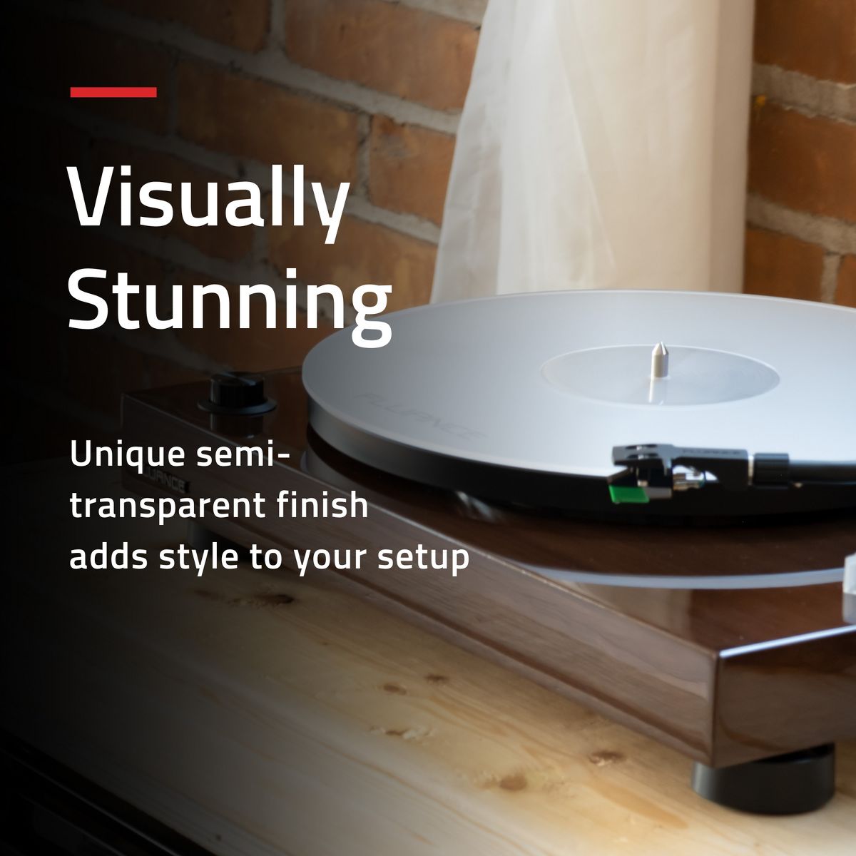 This acrylic mat is machined with extreme precision so you can enjoy your favorite tracks just as the artist intended. The uniform surface of acrylic with the built-in label recess maximizes contact with the record while providing the surface contact needed to perfectly spin your prized collection.